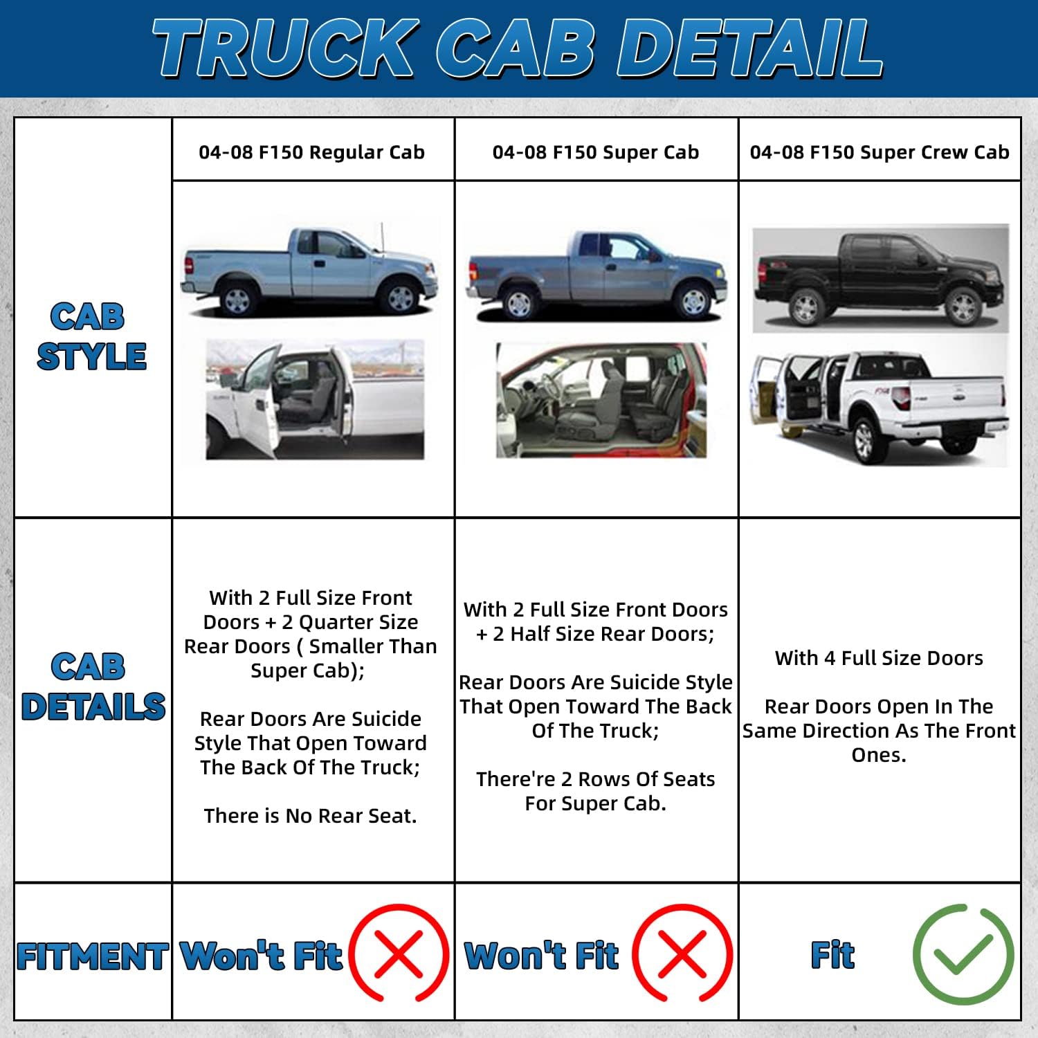 - Fit: 2004-2008 Ford F150 Crew Cab (AKA Super crew Cab) With 4 Full Size Doors Only; 2006-2008 Lincoln Mark LT