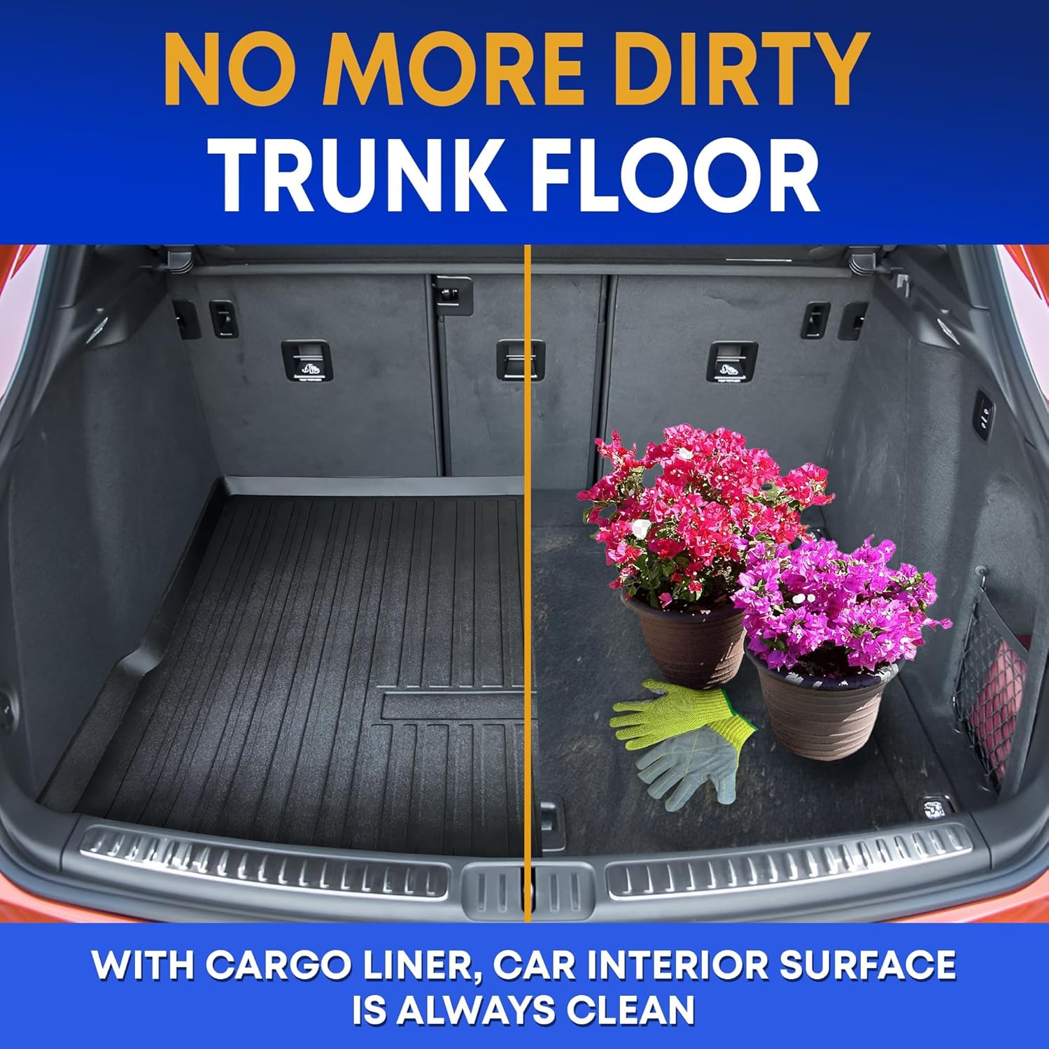 - Easy-To-Wash & Stain Resistant - The cargo mat liner for SUV is a perfect option if you are tired of the mess in your trunk after every trip. Forget the spending hours cleaning the trunk, our mat is easily washable, just rinse it with running water. The surface is stain-resistant, which makes it looks new even after years of use!