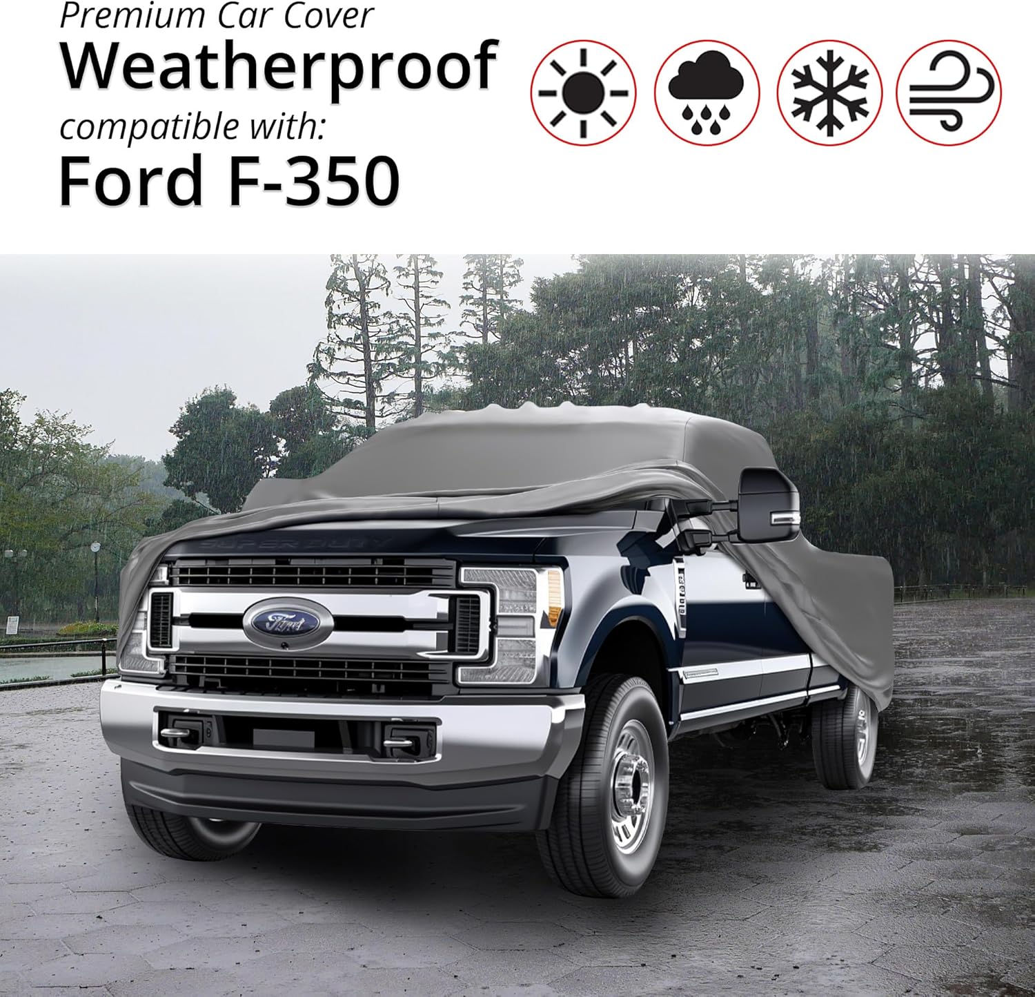 Car Covers Weatherproof Max Truck Cover & Warranty Compatible with Ford 2003-2019 F-350 CrewCab, 6.75' & Shell– Outdoor Cover, Prevents Theft with Cable Lock