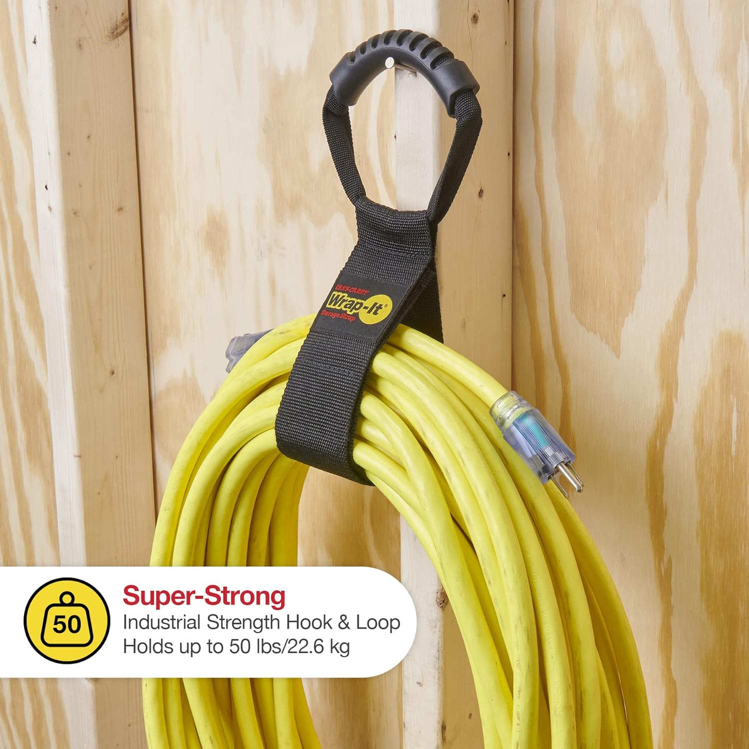 - SUPER EASY – Use these Easy-Carry Storage Straps to organize, carry, and hang, heavy-duty extension cords, RV cords, generator cords, electrical cords and cables, garden and water hoses, air hoses, pool hoses, rope, building materials and so much more!