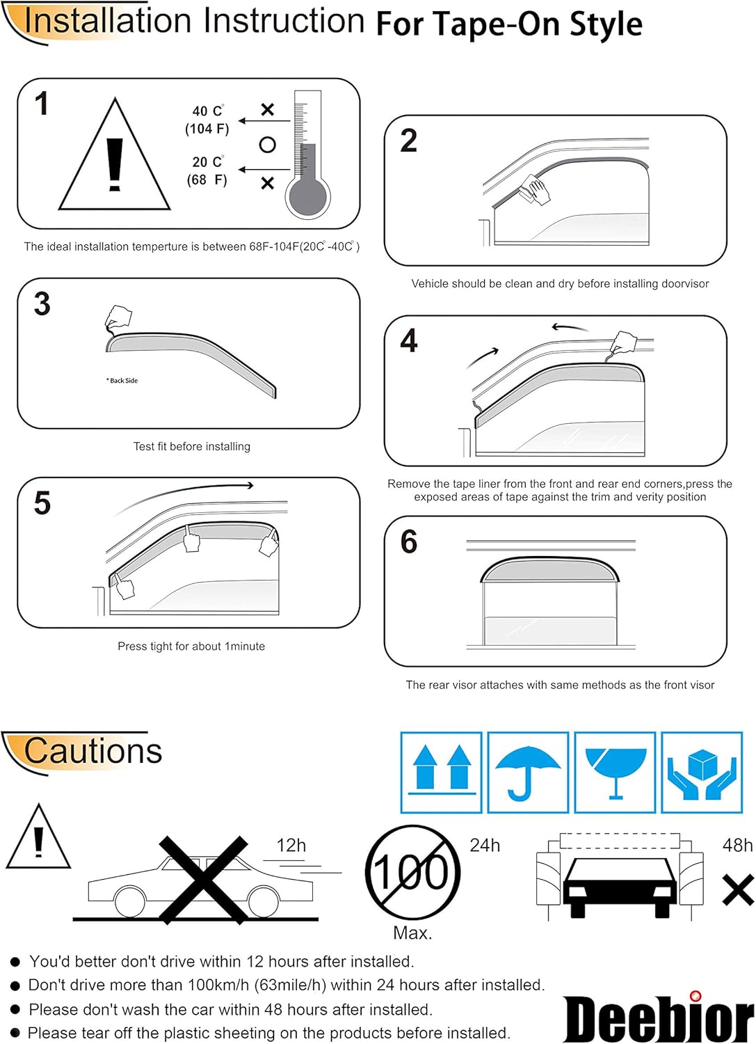 - Package Included:2pcs Front Left Right Wind Deflector Window Visors (Installation instruction is included, Please Reference The Pictures In The Left)