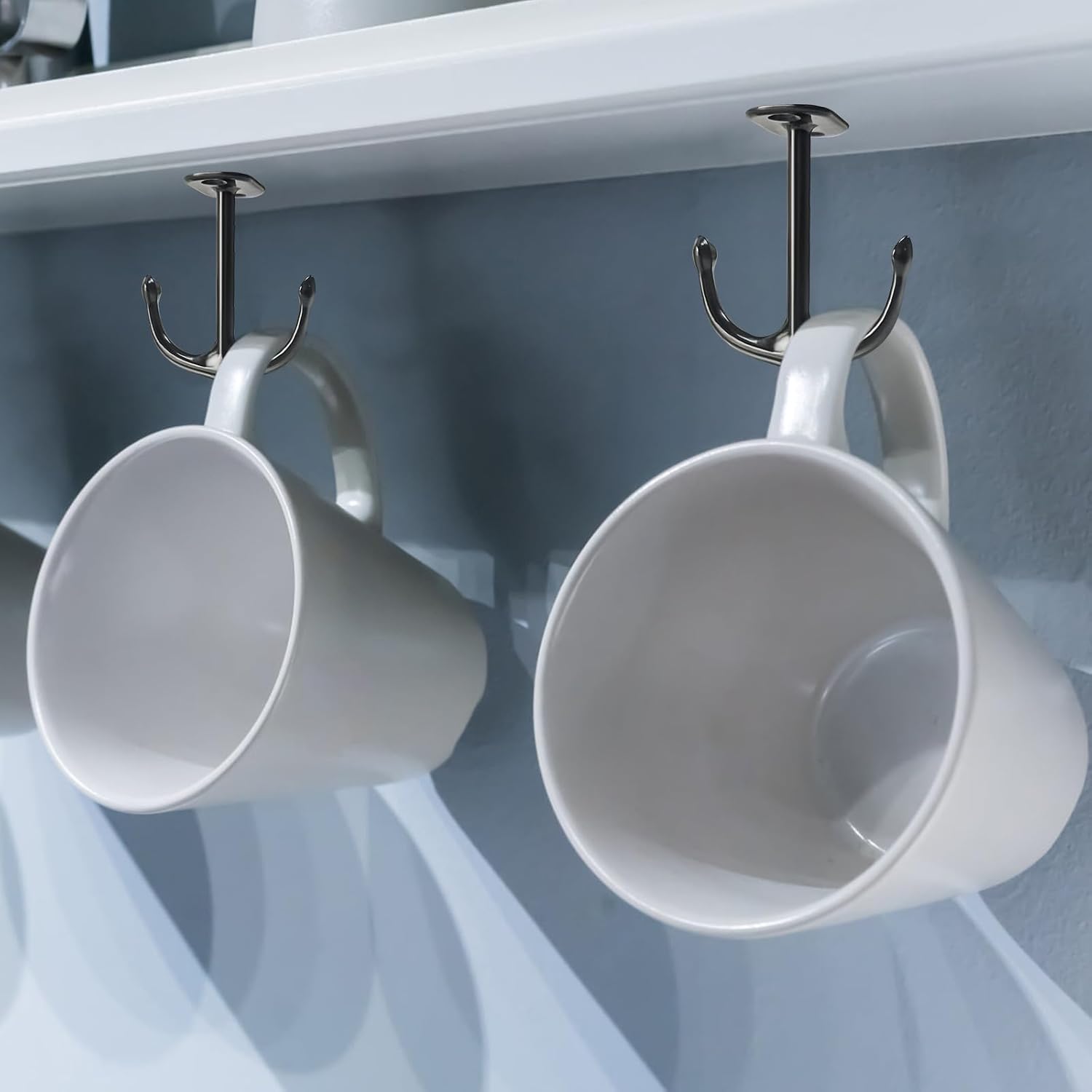 - 【3】FUNCTION ━ Hanging utensils, cups, and other household/kitchen items: Versatile in use, these under shelf hooks are ideal for hanging utensils, cups, and various other household or kitchen items, keeping your space tidy and organized.