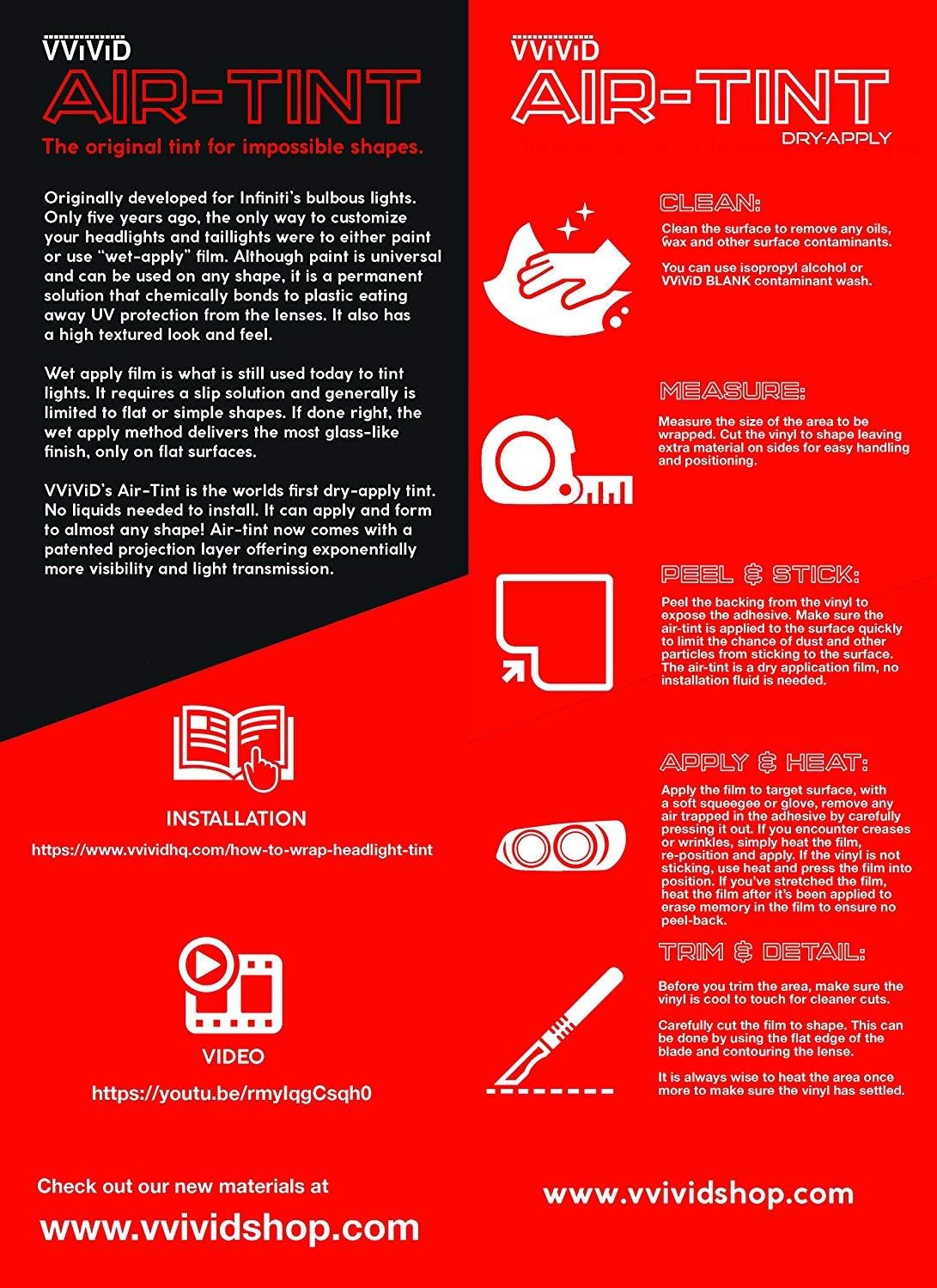 - VViViD Headlight tints are designed to conform and stretch around difficult surfaces.