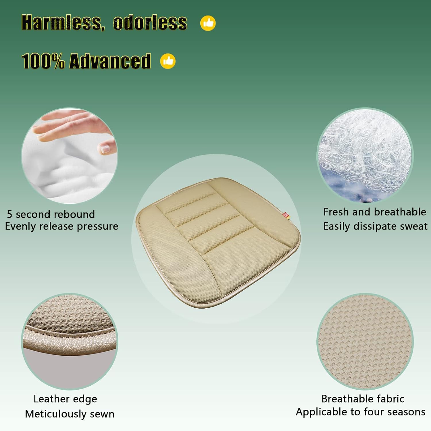 - ★【Designed For Your Seat】This auto seat cushion has a size of 21.3""*18.5"", 1.2 inches, suitable for most car seats. The seat cushion adopts patented memory foam technology (rebound time 3-5 seconds) . The sewing thread is neat and smooth. It is equiped with a super-quality leather edge. The seat cushion is scratch-resistant, wear-resistant and durable. It will not lose its shape or loose threads and abrase edges after washing.
