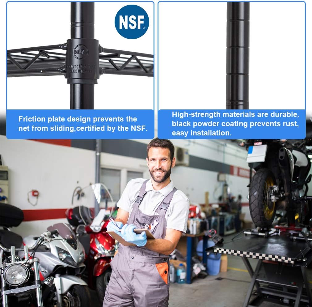Wire Shelving Unit Commercial Metal Shelf Adjustable Layer Rack Strong Steel for Restaurant Garage Pantry Kitchen Garage (36×14×72, Black)