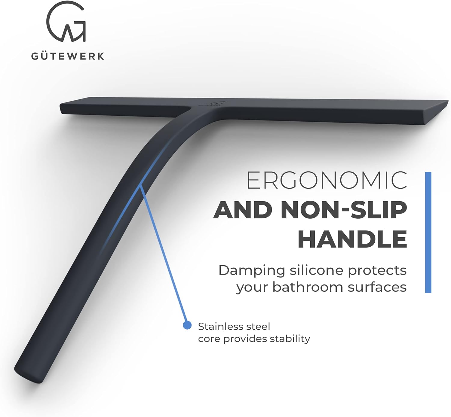 GÜTEWERK Shower Squeegee for Glass Doors, Silicone Window Squeegee, Bathroom and Glass Cleaning - Black - 11 Inch