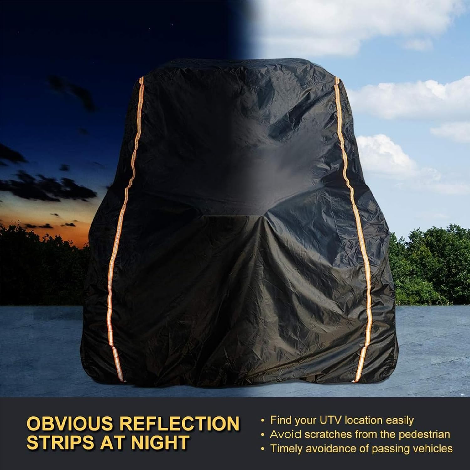 - Be Seen at Night: The 2 seater cover features long reflective strips on both sides, providing a large reflective surface area for more effective warning signals to prevent collisions after parking at night. With this cover, your UTV will always be pristine. Simply remove the cover, jump on, and go