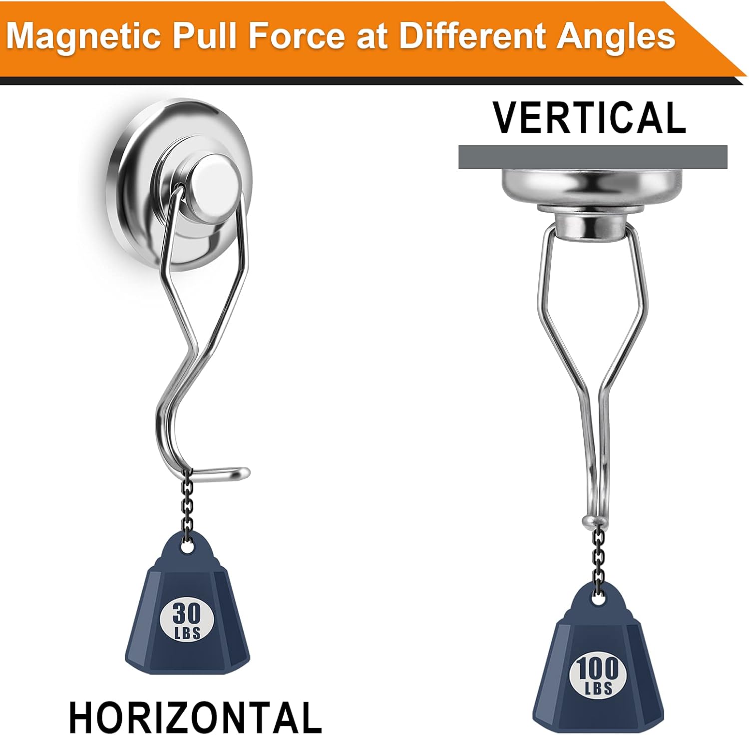 - STEADY WITHOUT DRILLING: Steady for magnetic surface. High INDUSTRIAL GRADE: 100LBS Capacity is based on horizontal application -- reduced by 2/3 if used vertically.grade neodymium magnet hooks for organization, mounting, decorating and storage.
