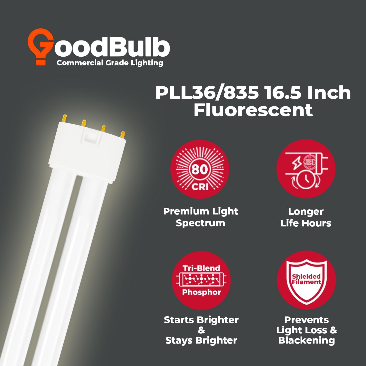 GoodBulb PLL36/835 36W 16.5" Twin Tube Compact Fluorescent Light Bulb 4-pin 2G11 Base 3500K Neutral White 2400 Lumen 36000 Hour Long Life Biax Pack of 10