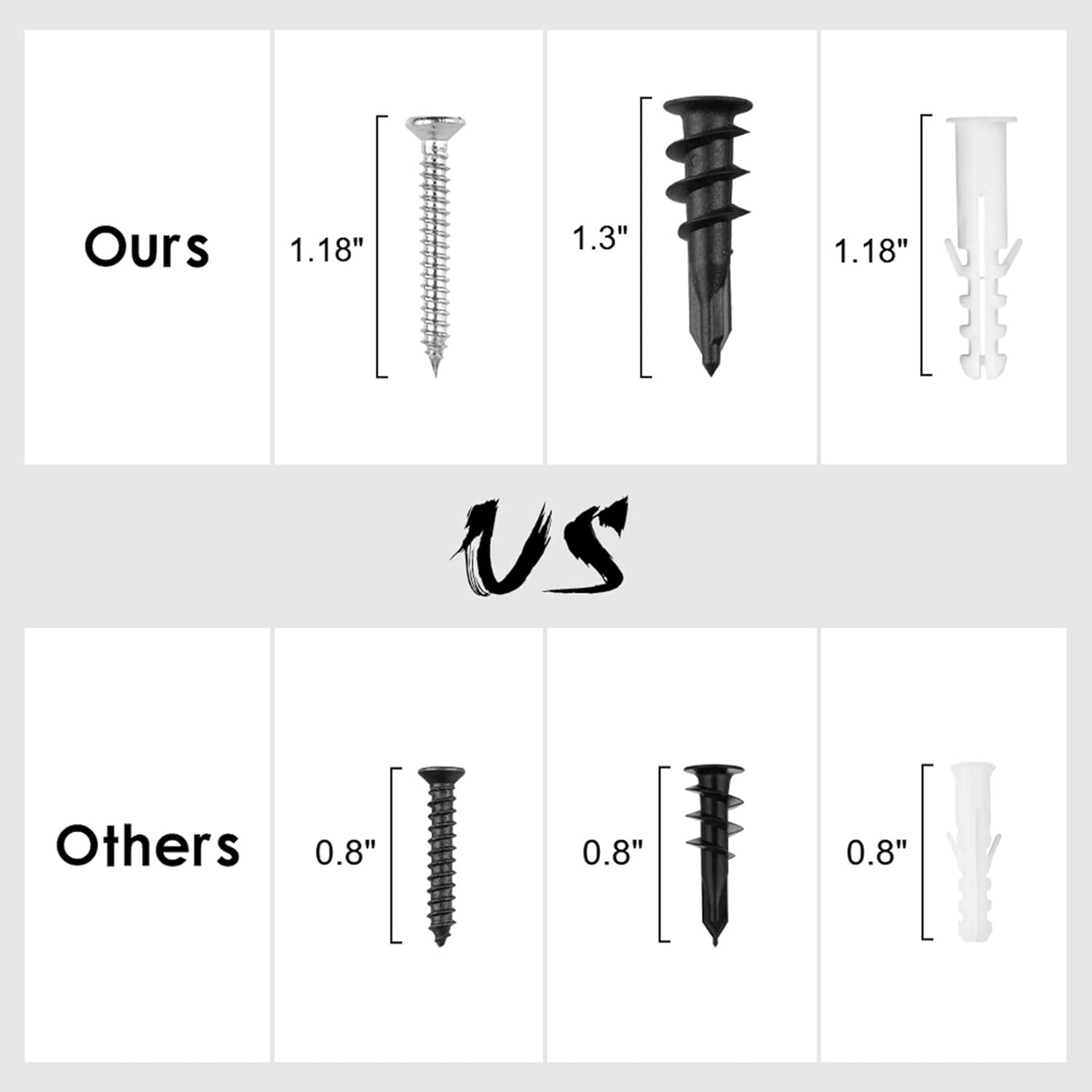- 【EASY TO INSTALL & BEARING CAPACITY】 These garage hooks are suitable for plaster, wood, brick, and concrete walls. You can install them effortlessly. For plaster walls, (1)Mark two big holes; (2)Twist the black wide thread screw plug in. For wooden/brick walls, (1)Mark two small holes; (2) Drill a hole and hammer in the white plastic anchor; (3) Twist the steel screw nail into the anchor. The bearing capacity depends on different types of walls; different sizes of tool hooks and screws