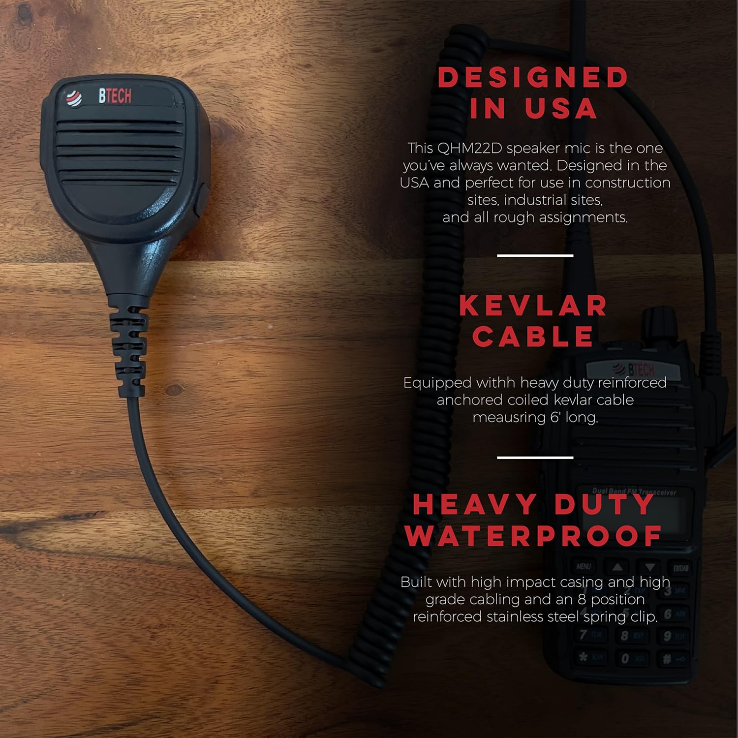 BTECH QHM22D Dual Push-to-Talk (PTT) Speaker Mic, Platinum Series IP54 Rainproof Shoulder Mic for BaoFeng, BTECH, Kenwood Radios