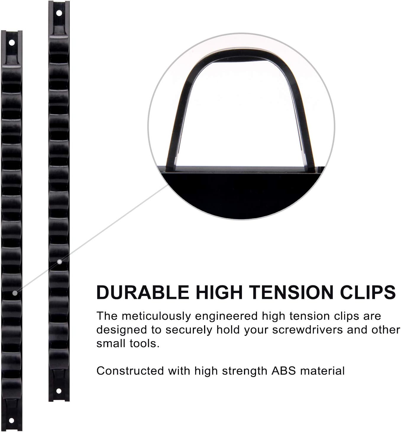- Set includes 2 pcs screwdriver rails with 26pcs red clips, 2 pcs screwdriver rails with 26pcs blue clips and 2 pcs wrench rails with 26pcs black clips