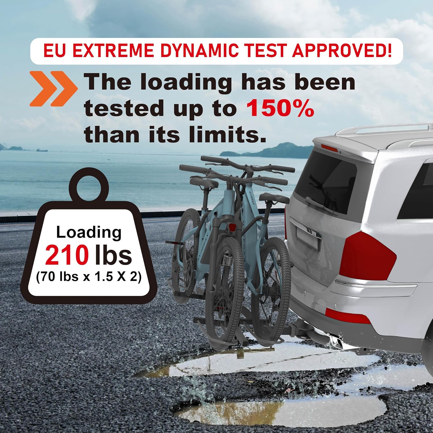 - 140 LB TOTAL CAPACITY: Supports up to 70 pounds per bike, our rack is compatible with mountain bikes, electric bikes, road bikes with up to 5-inch fat tires, and up to 58-inch wheelbase. For step thru bikes / lady bikes required bike adapter (not included) Remark: this rack is capable of carrying two super 73 E bikes as long as they are within 70 pounds of each E bike.