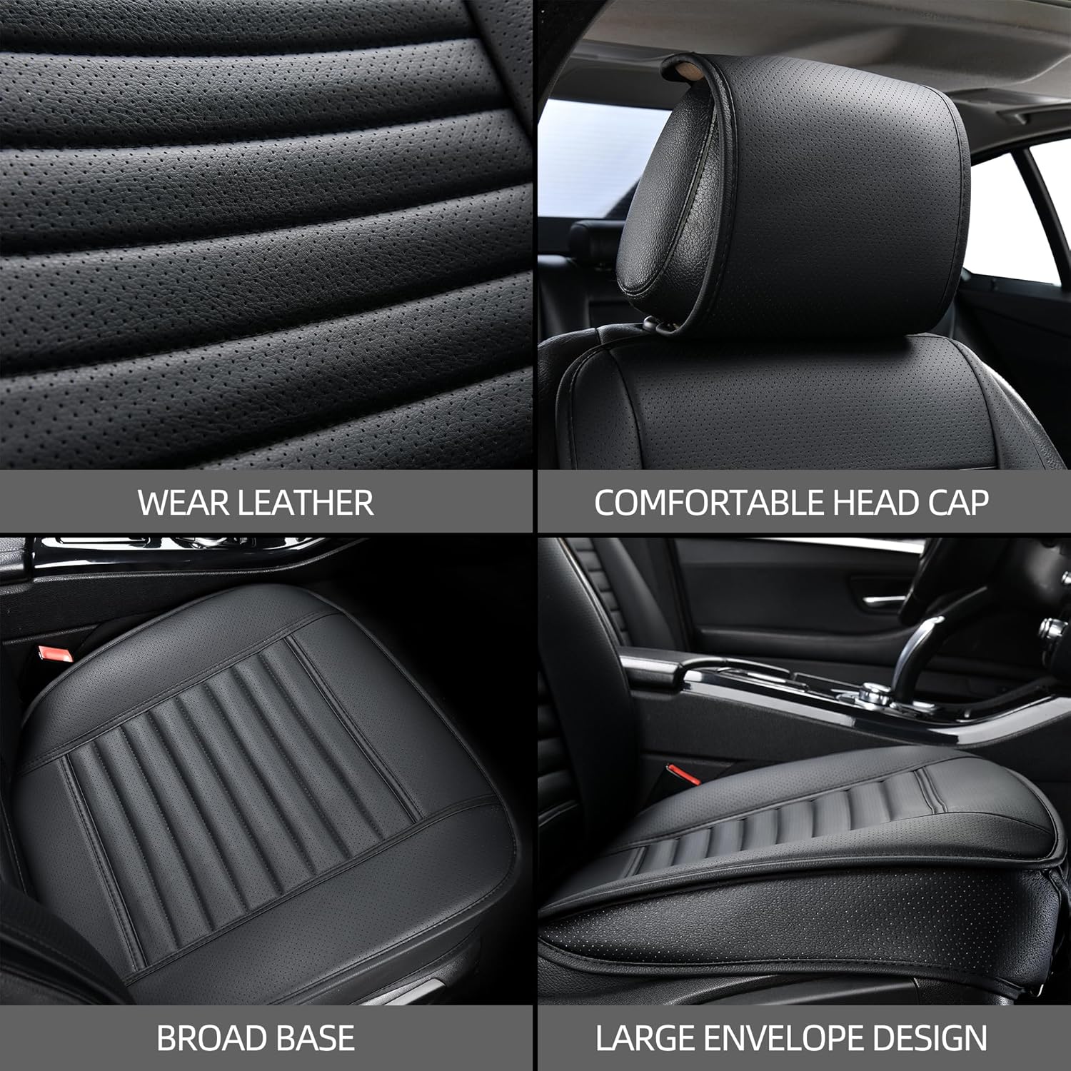 - ✅Premium PU Leather Material-The auto seat cover is made of high-grade soft PU leather, waterproof, easy to scrub, durable and good breathability. Built-in a layer of highly flexible sponge, four seasons applicable. Maintain the comfort of the buttocks, helps relieve pressure on hips and thighs from driving for a long time. At the bottom of cushion is rubber sole which prevent falling off from your car driver seat.