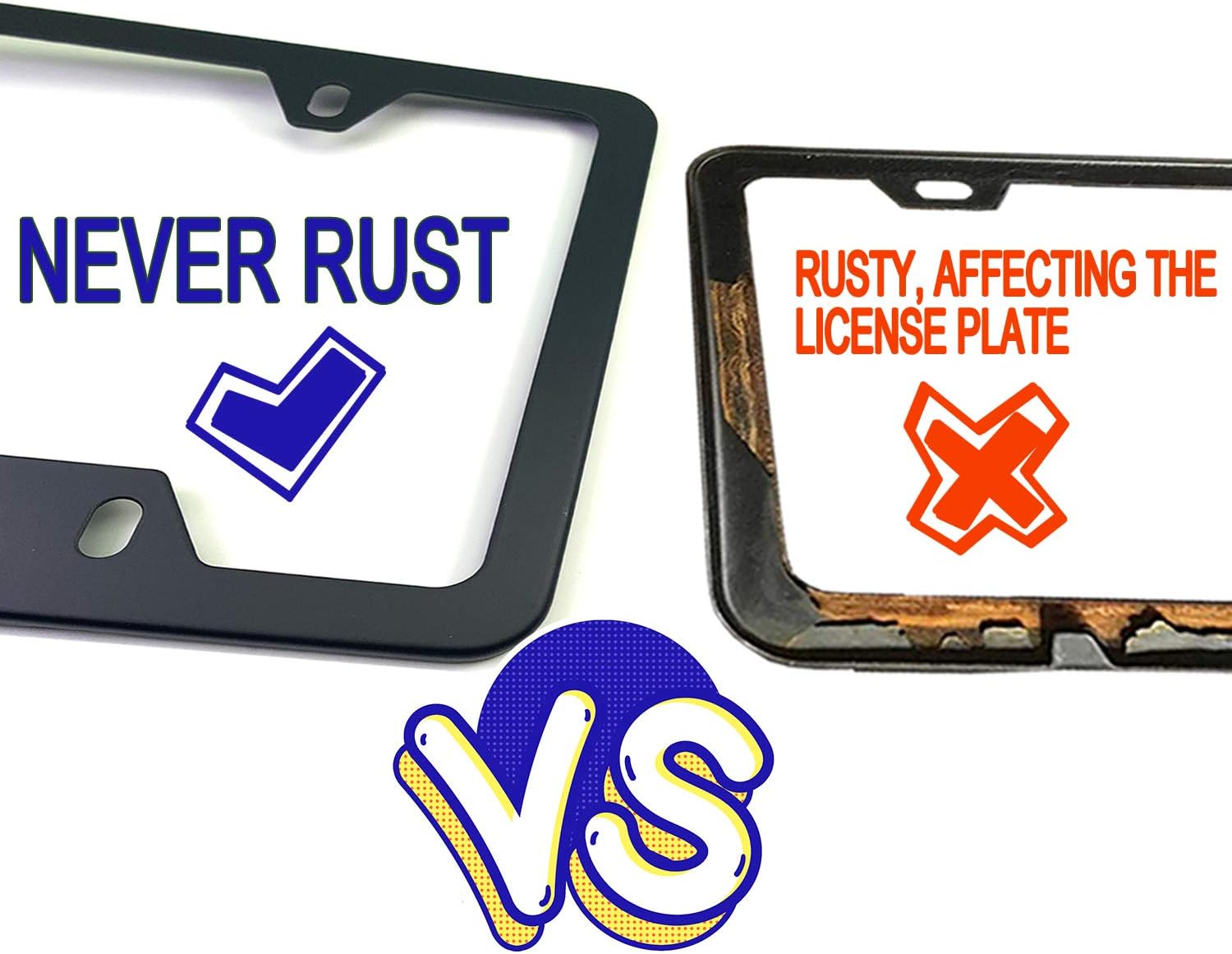 - Rattle Proof License Plate Frame- The black license plate holder set is equipped with a black foam shock-absorbing license plate pad, protect the car paint and reduce the rattle of the metal license plate. 2 Pack American Flag stickers with Thin Blue Line decal as bonus, 2.5" X 4.5", Weatherproof, UV & Water Resistant, easy to apply to any smooth surface. Perfect decal sticker for the decoration of Autos, SUVs, windows, bumpers, etc. Express your patriotism with a personality