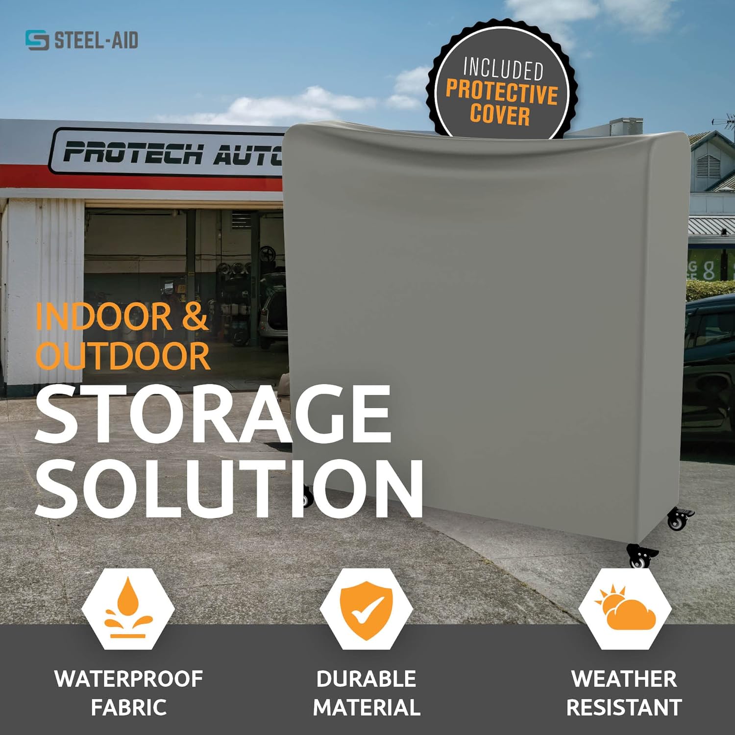 Rolling Tire Rack β Metal, Adjustable, Tire Stand & Protective Cover, Included 4 Adjustable Non Rolling Legs [Updated 48'' L with 4 Wheels Included]