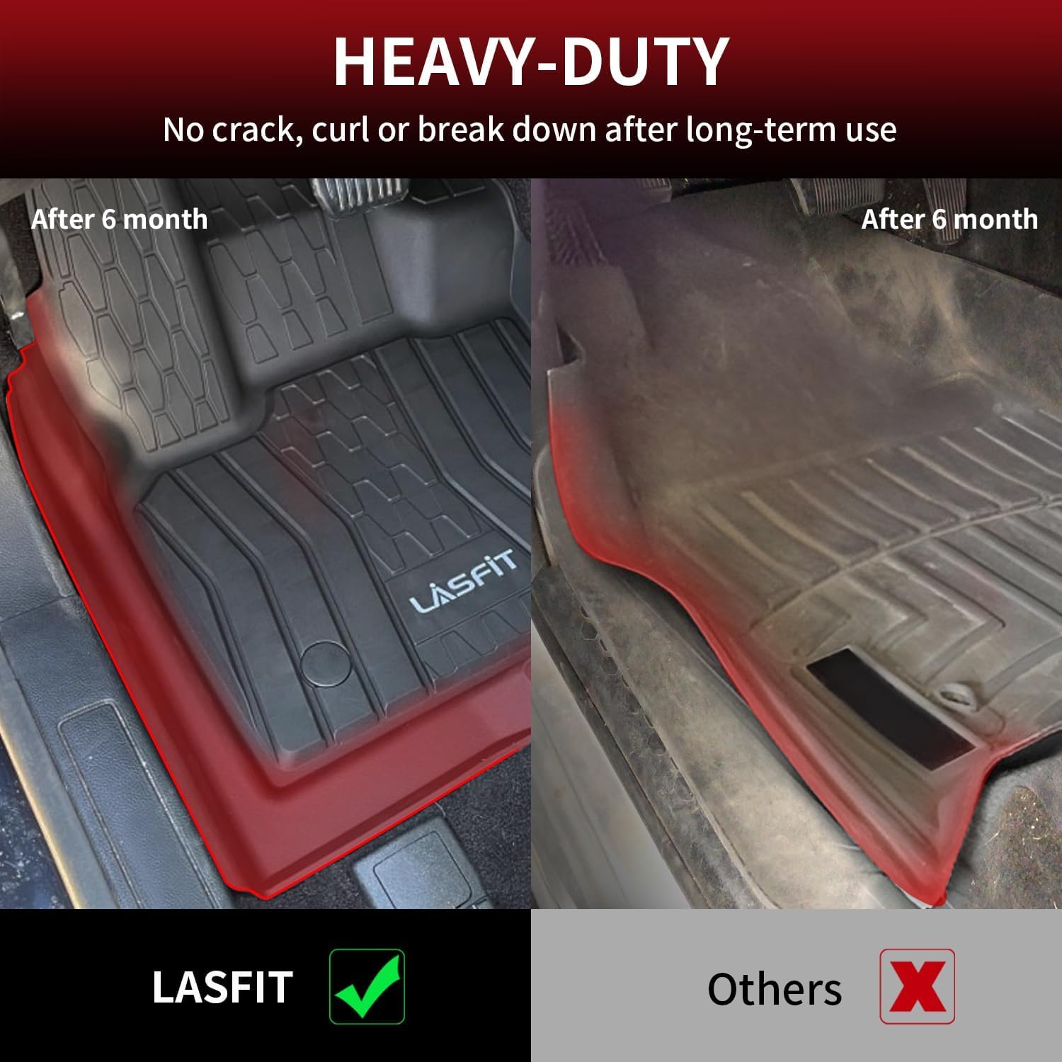 - 【EASY INSTALLATION & MAINTENANCE】Designed for effortless installation and removal.The anti-slip buckle design aligns with the vehicle's original floor positions, ensuring a secure fit. LASFIT floor mats are stain-resistant, waterproof, and easy to clean. Simply wipe with a damp cloth or remove and rinse with water for a quick refresh.