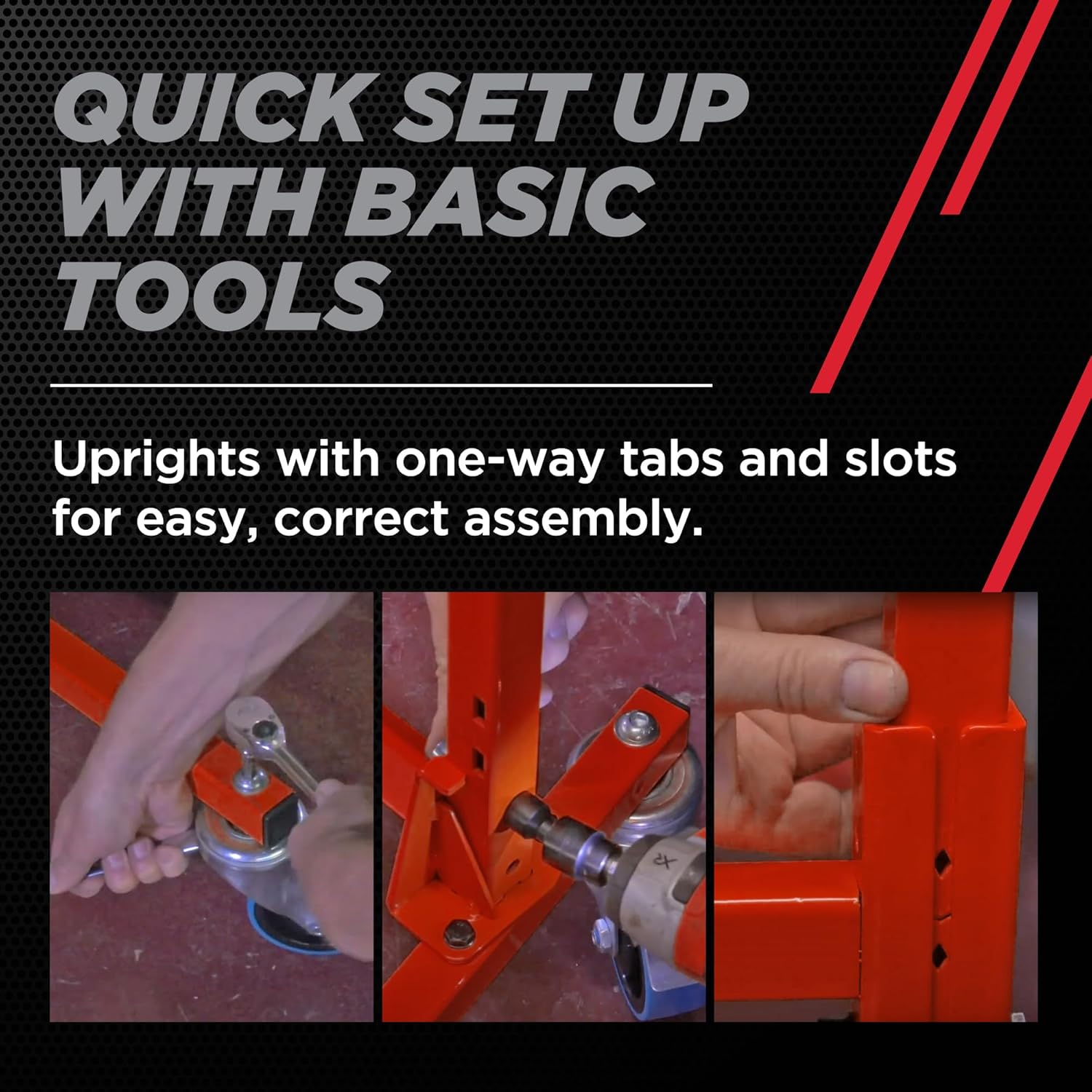 - Multiple shelf positions: Reposition or remove shelves of this garage organizer to maximize storage. Wide, open shelves provide clear visibility and quick access to stored car parts. Shelves easily detach and hang on built-in tabs for quick adjustments.