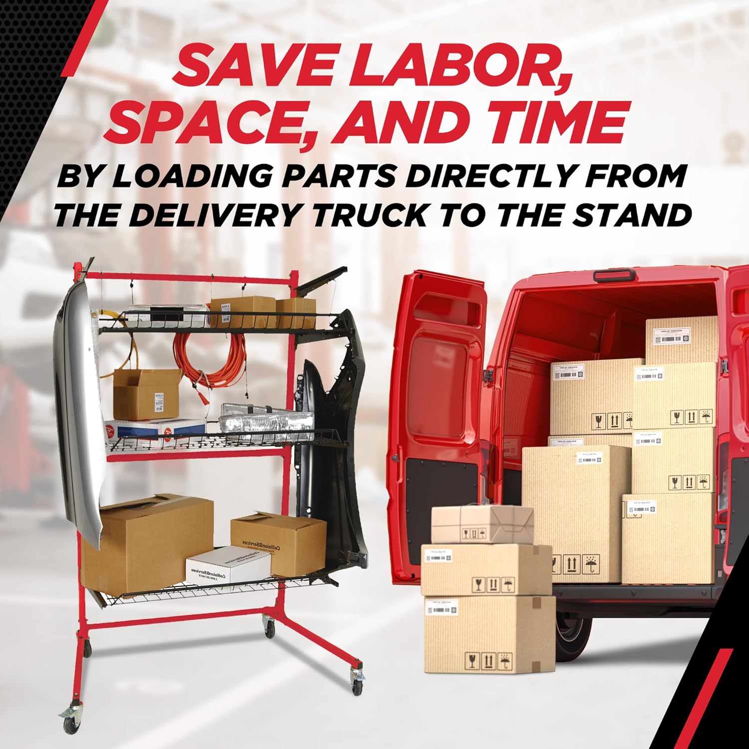 - Heavy-duty load capacity: This body shop parts rack is built from high-strength, powder-coated steel. Supporting up to 150 lbs per shelf, this cart parts rack ensures durable, secure storage for demanding workshop environments.