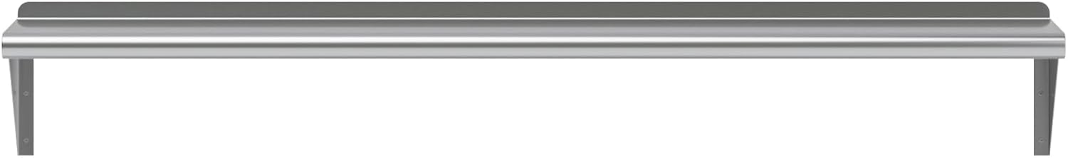 - 10 in. x 60 in. Stainless Steel Wall Shelf with 8 in. High Mounting Brackets. This heavy-duty multifunctional stainless wall shelf is made with 18 gauge stainless steel and can hold up to 230 Lbs of weight. The design features a 1 in. backsplash and bullnose edge. It's made with durable welded corners and support brackets.