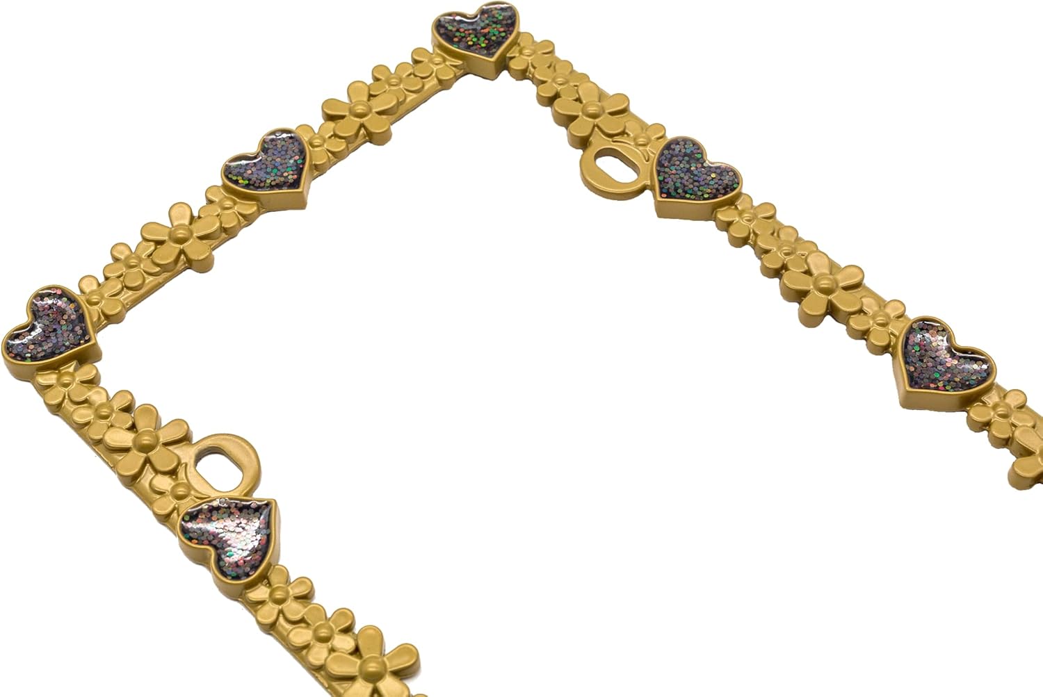 Creathome 3D Shining Daisy Heart License Plate Frame from Pure Zinc Alloy Metal Perfect Plate Holder, Matt Gold with Black Glitter, Luminously Heart