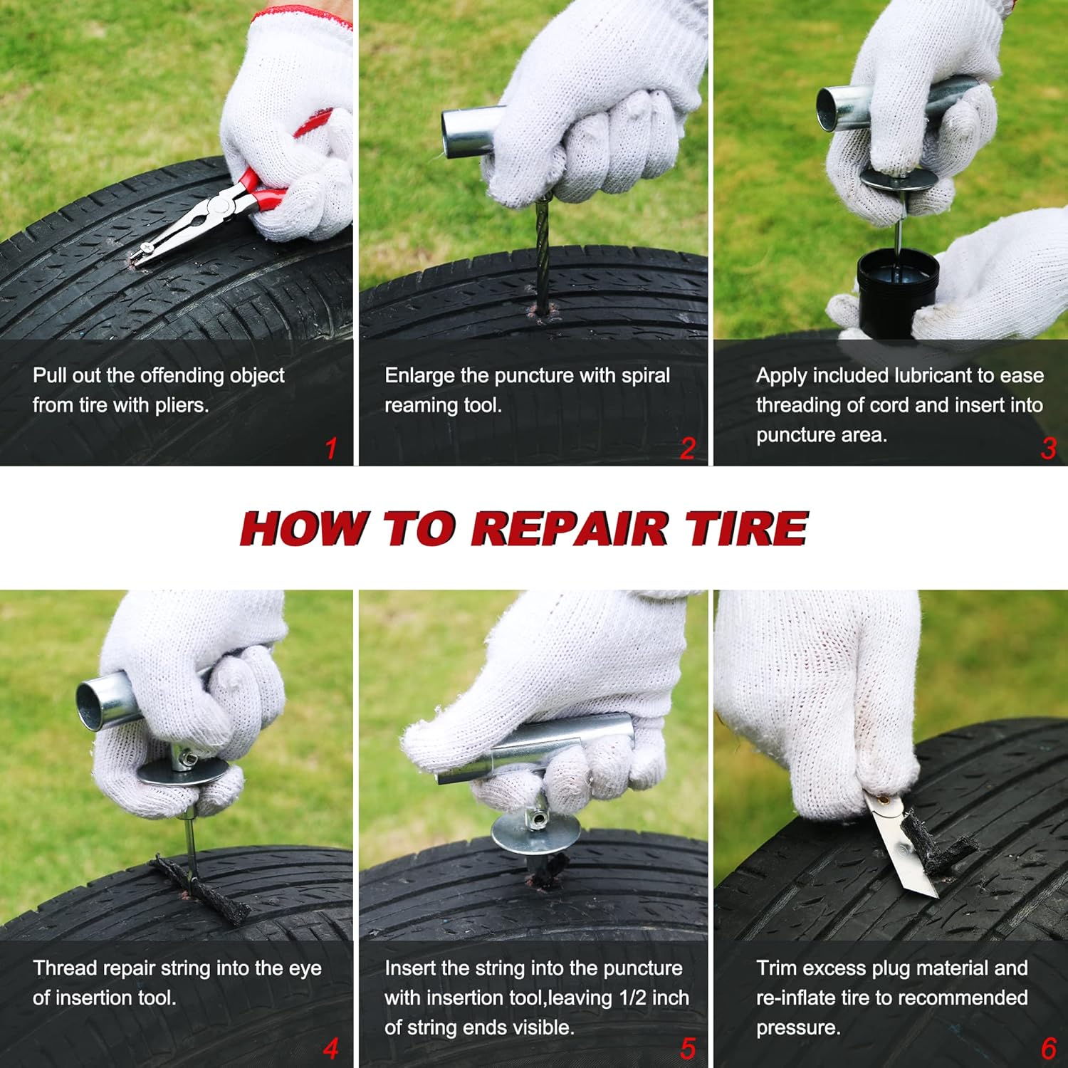 - Easy and quick to repair punctures for all tubeless tires on most vehicles, no need to remove tires from rim
