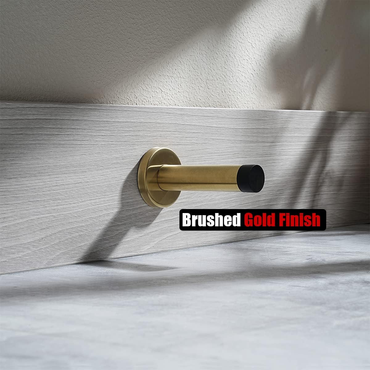 JQK Door Stopper Gold, 304 Stainless Steel Thicken 1mm Sound Dampening Door Stop Bumper Wall Protetor 2 Pack, Brushed Gold, DSB5-BG-P2