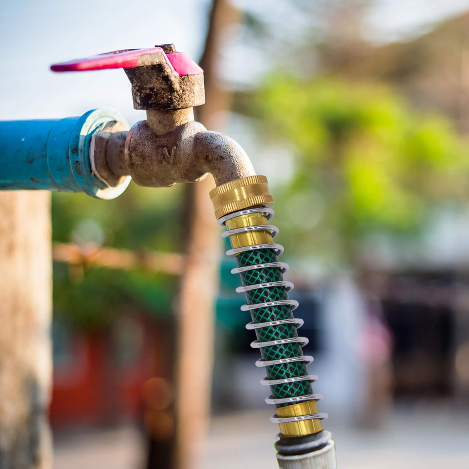 - FUNTION: This garden hose protector prevents the garden hose from kinking and leaking, will effectively extend garden hoses life.