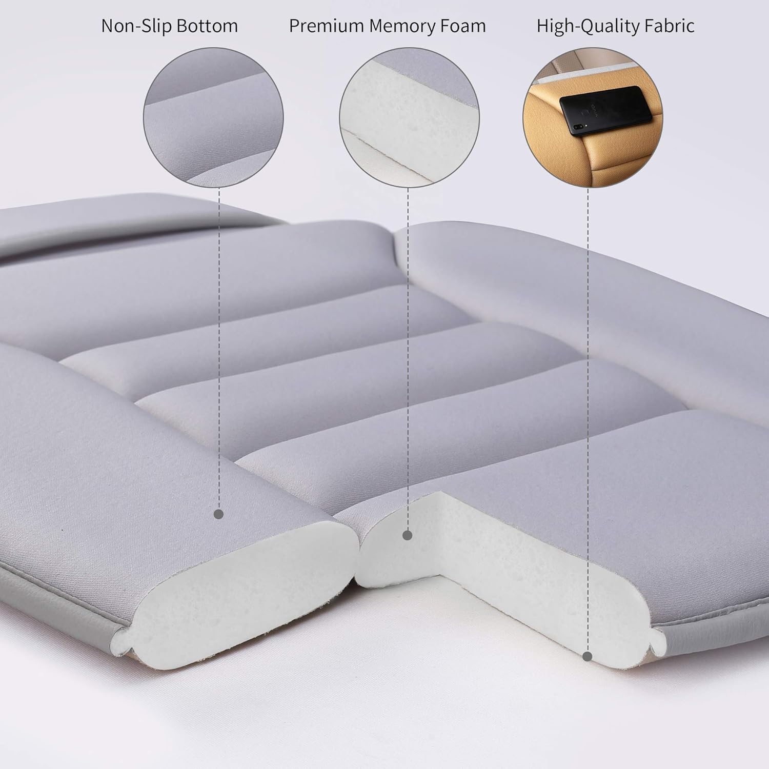 Premium Car Seat Cushion, Driver Seat Cushion with Comfort Memory Foam & Non-Slip Rubber Bottom, Car Seat Pad Works with 95% of Vehicles and Office Chair or Home (Gray)