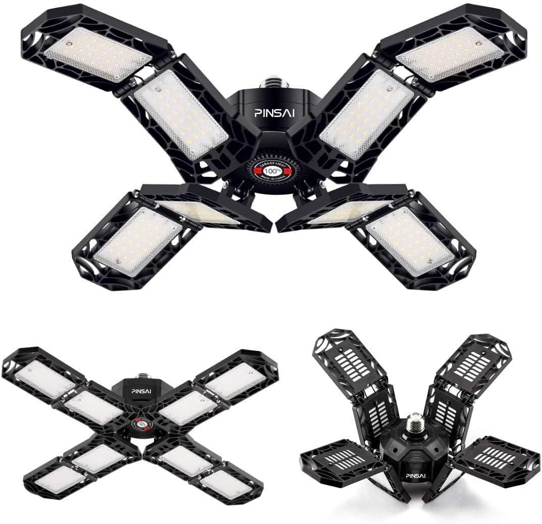 - 【Eight-Leaves Deformable Super Bright LED Garage Lights】- With 8 ultra-bright adjustable LED pannels. It features with 8*24 PCS top quality diodes that total 20000 lumens, CRI80+, 6500K daylight can give you 85% energy saving for your garage. The upgraded lighting fixtures have sufficient brightness and are the preferred choice for work.