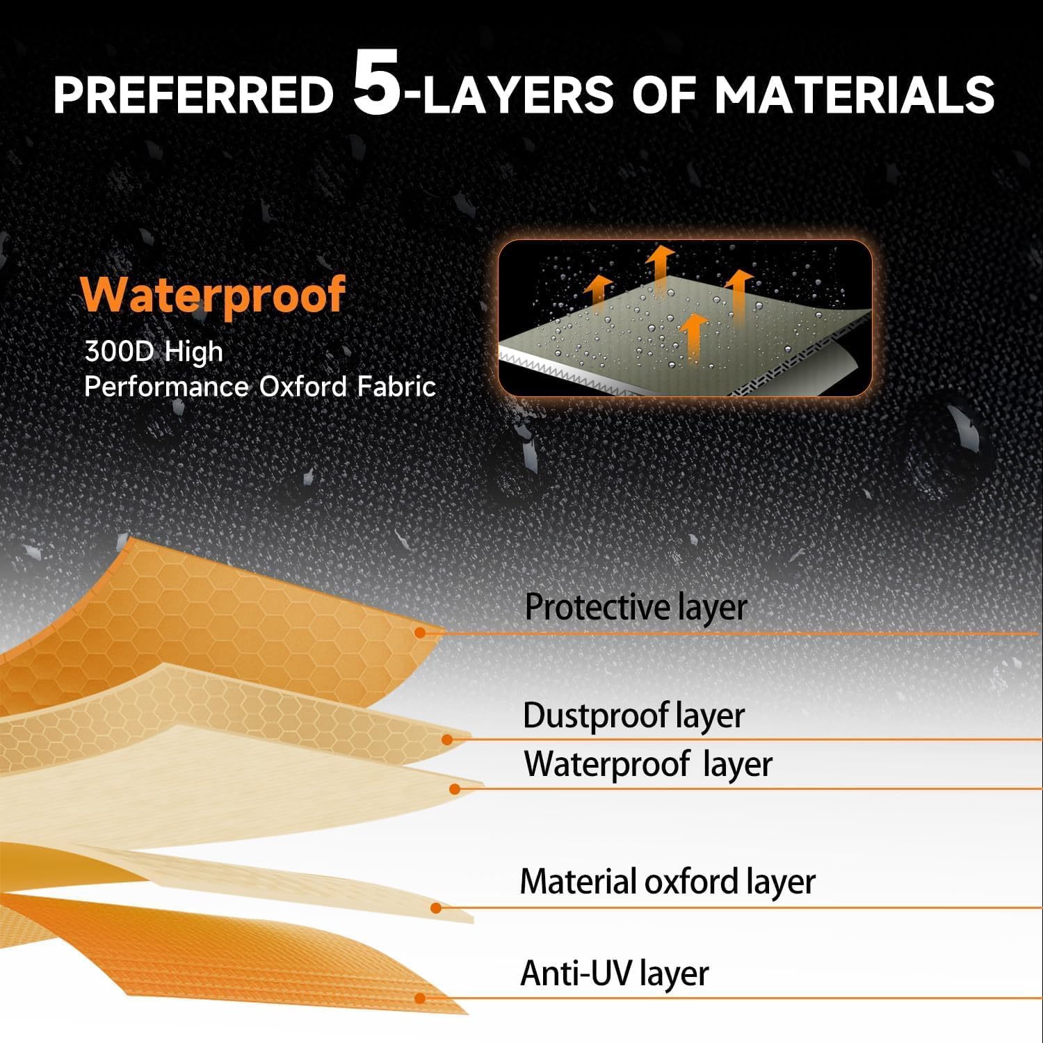 - Coverage : water-resistance, windproof, sun, rain, snow, bird poop, tree sap, and dirt protection