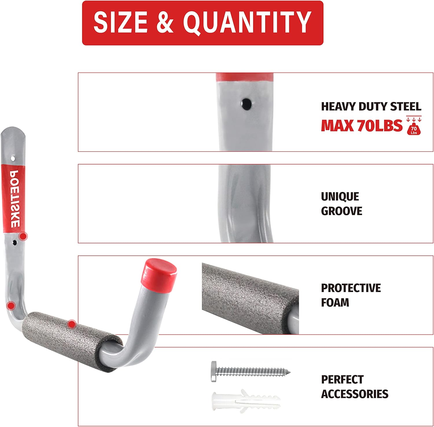 unp POETISKE Utility Hooks Ladder Hooks with 9.8'' Jumbo Arm Garage Storage Organizer Hang Folding Chair Bike Ski Tool Heavy Duty 4PC