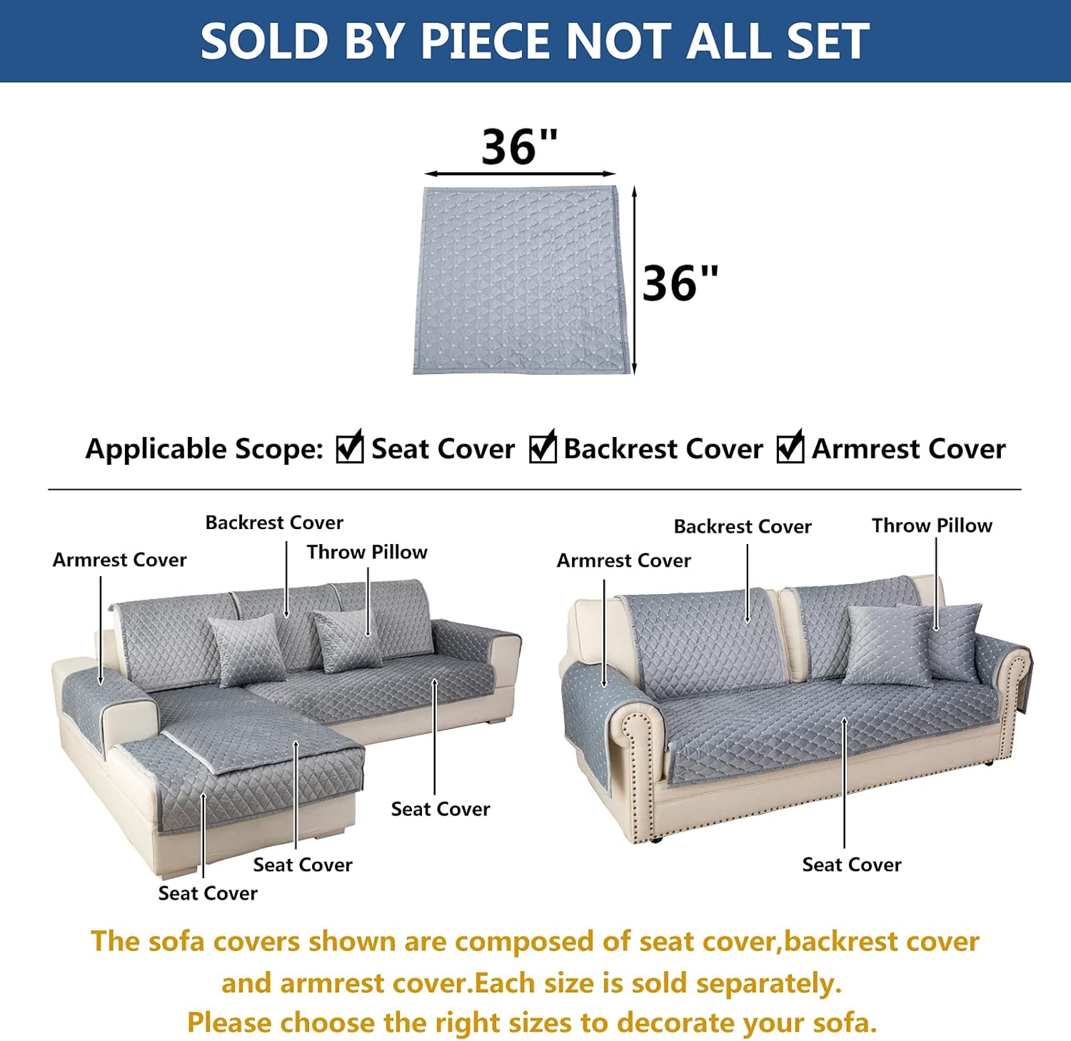 Eismodra Couch Cover,Sectional Couch Covers,Sofa Covers for 3 Cushion Couch,Anti-Slip Sofa Slipcovers for Dogs Cats Kids Loveseat Recliner L Shaped Armrest Backrest,Light Gray 36''x36''(Only 1 Piece)
