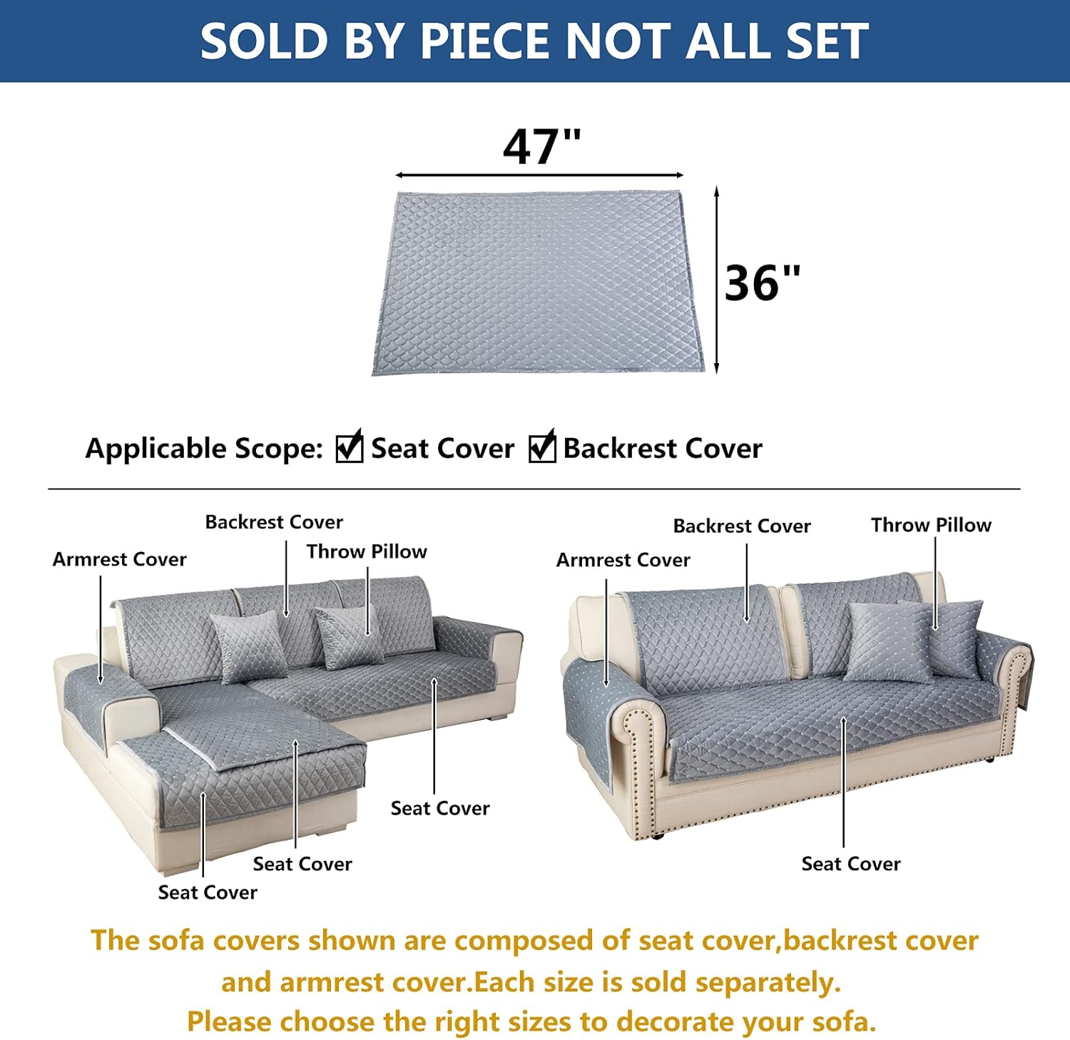 Eismodra Couch Cover,Sectional Couch Covers,Sofa Covers for 3 Cushion Couch,Anti-Slip Sofa Slipcovers for Dogs Cats Kids Loveseat Recliner L Shaped Armrest Backrest,Light Gray 36''x47''(Only 1 Piece)