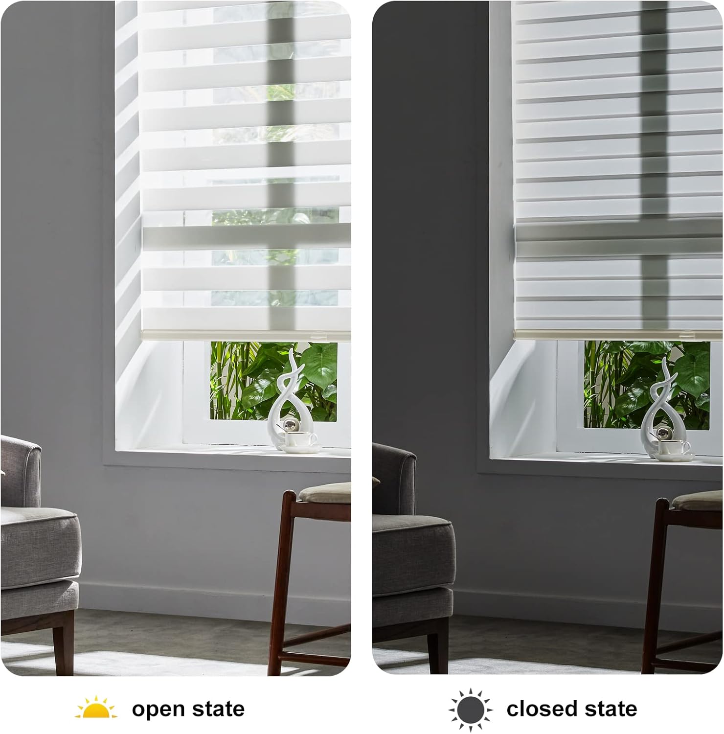Persilux Cordless Zebra Blinds for Windows Free-Stop Window Shades (27" W X 72" H, Cream) Dual Layer Light Control for Day and Night, Light Filtering Sheer Shades for Home, Easy to Install
