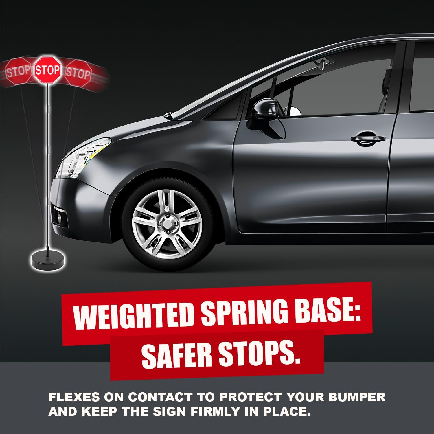 Securityman Garage Parking Aid with LED Stop Sign [Upgraded Base] – Large 7" Sign, Bright Red LEDs, Adjustable Height – Garage Car Stopper & Parking Assist Indicator