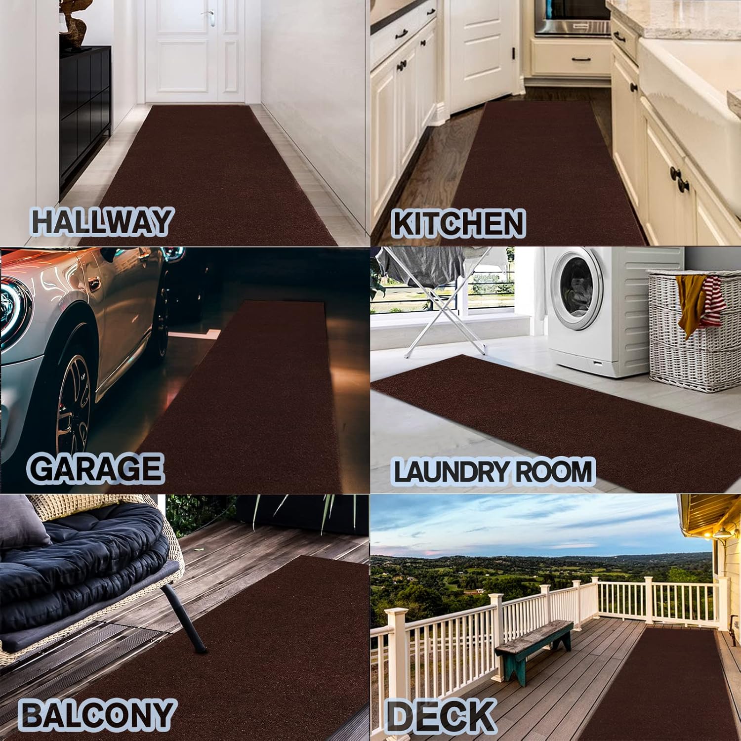 Custom Size Backed Non-Slip Area Rugs Runner, Easy Clean, Waterproof Runner Rugs for Hallway Entryway, Kitchen, Laundry, 3FT x 8FT, Brown