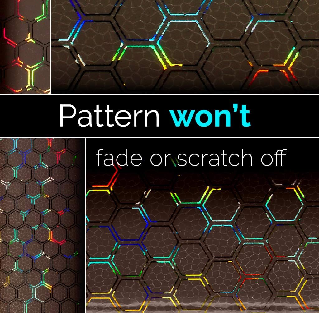 - Unique hex cell pattern is embedded into the tint and not just printed on the surface. Never worry about fading or scratching off!