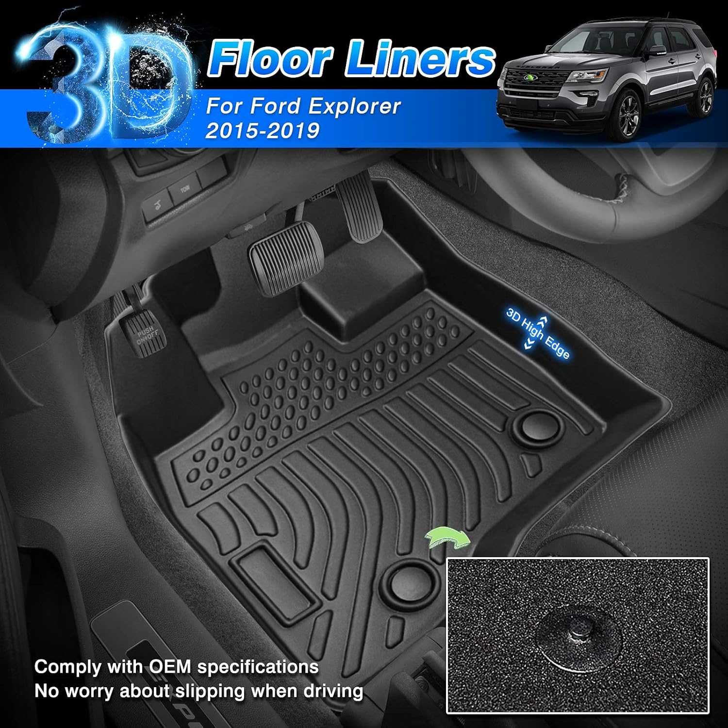 Cartist Compatible with Floor Mats Ford Explorer 2015-2019 All Weather Floor Liners 1st & 2nd Row Seat TPE Odorless High Edge Mat