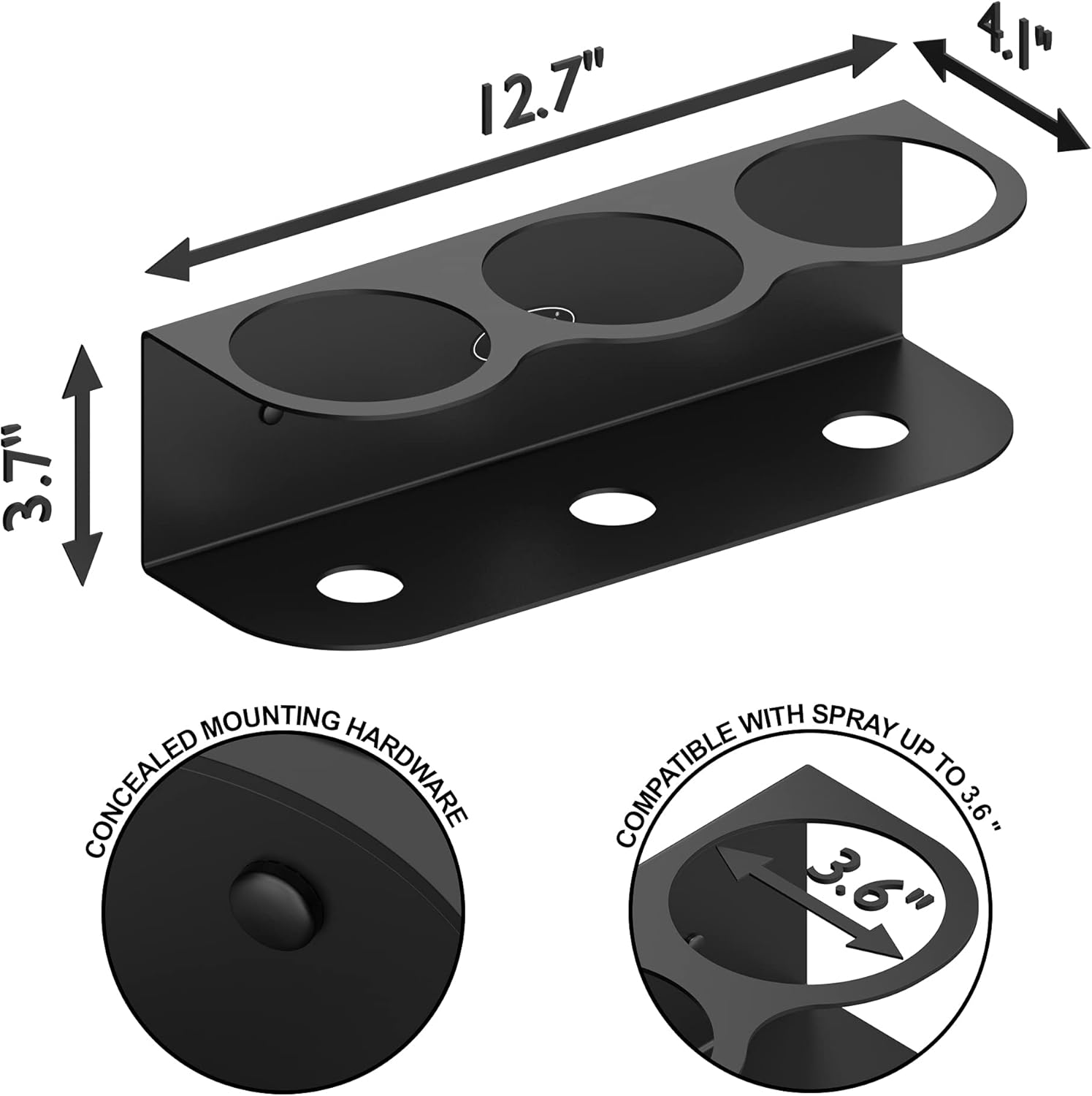 Koova 3 All-Purpose Spray Bottle Holder | Easy Install Wall Mount Hardware Included | Heavy-Duty Powder Coated Steel Storage Rack for Garage And Home | Craft Workspace Paint Bottle Organizer USA Made