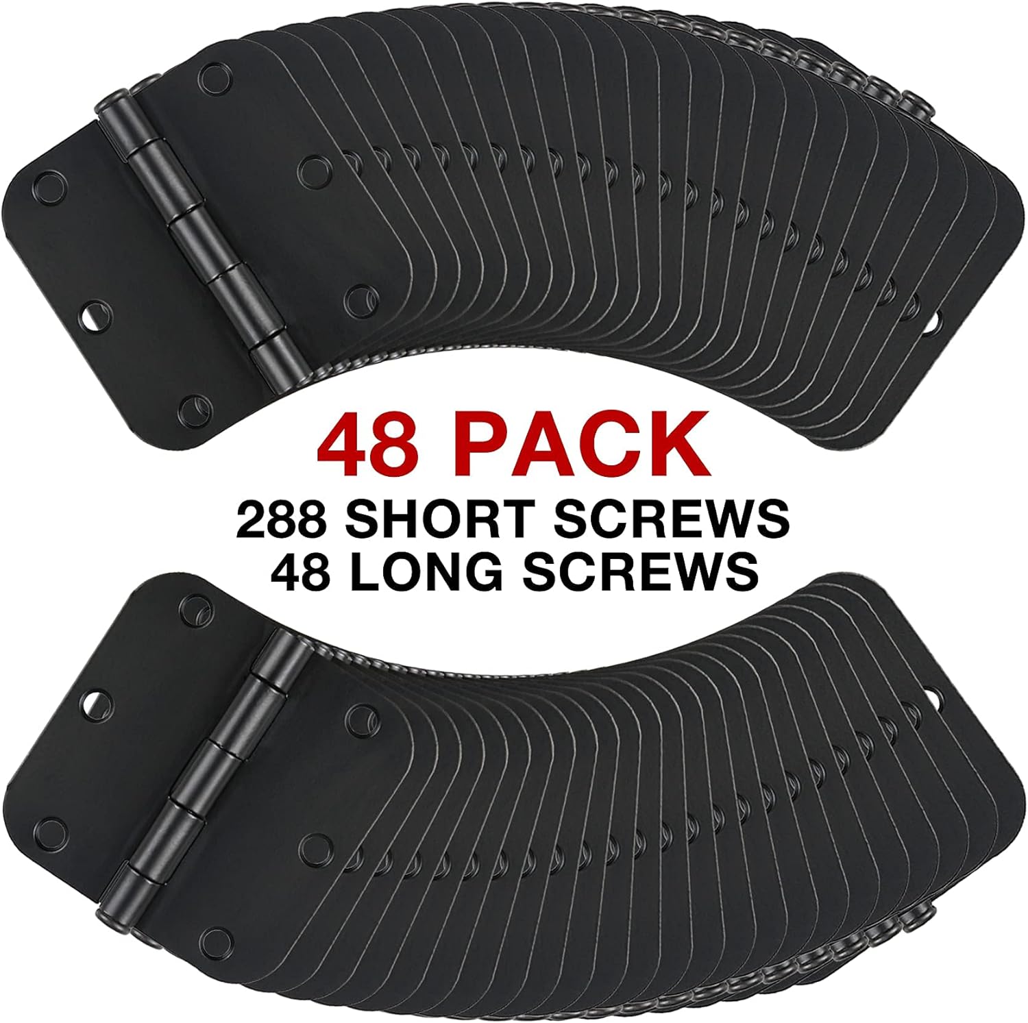 48 Pack Rounded Matte Black Door Hinges 3.5 Inch 5/8" Radius for Interior 3 1/2" Flat Iron Bifold Residential Standard Bedroom Indoor for Doors 3 ½"Hardware House Home Decor Essentials Accessories
