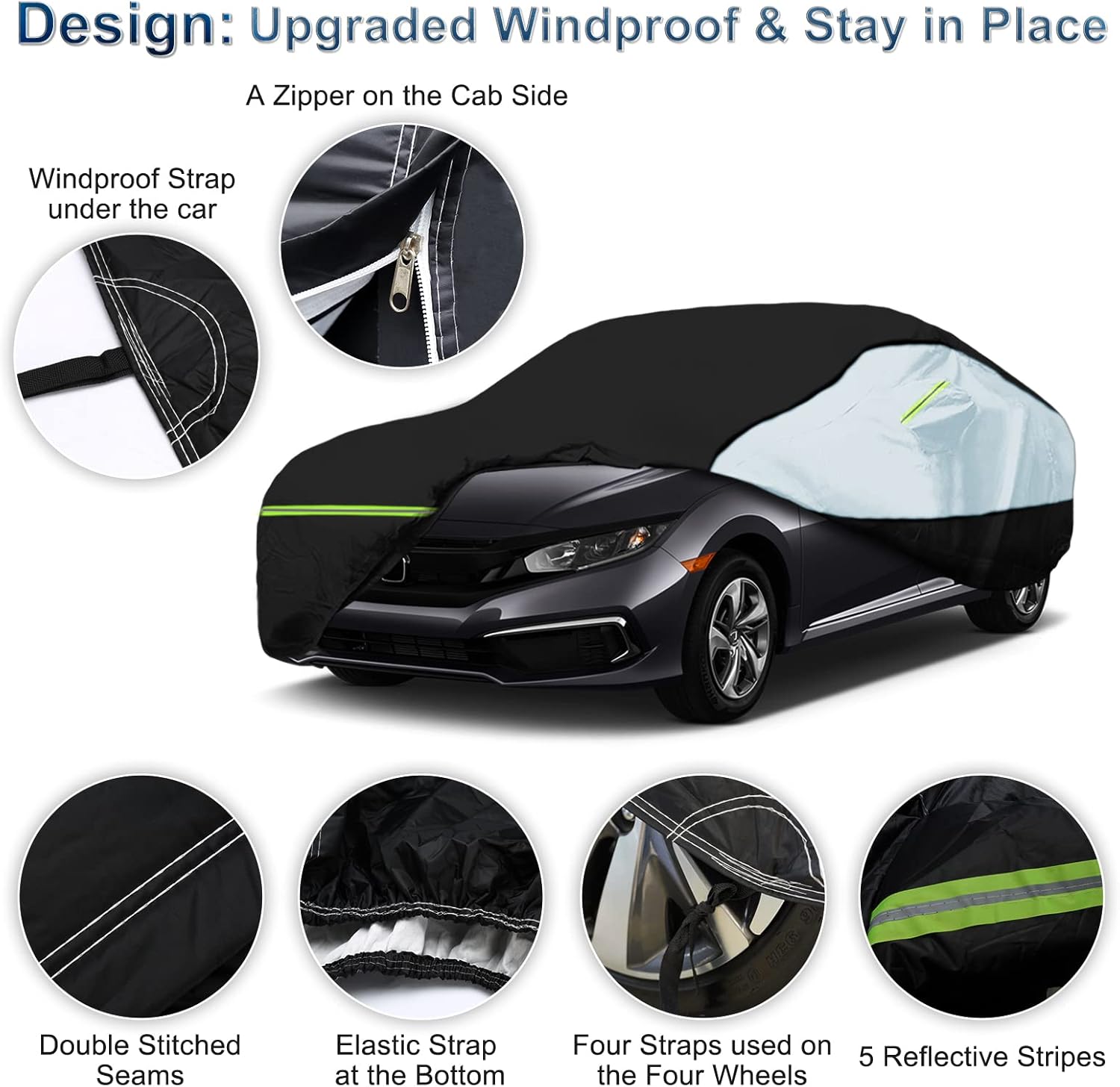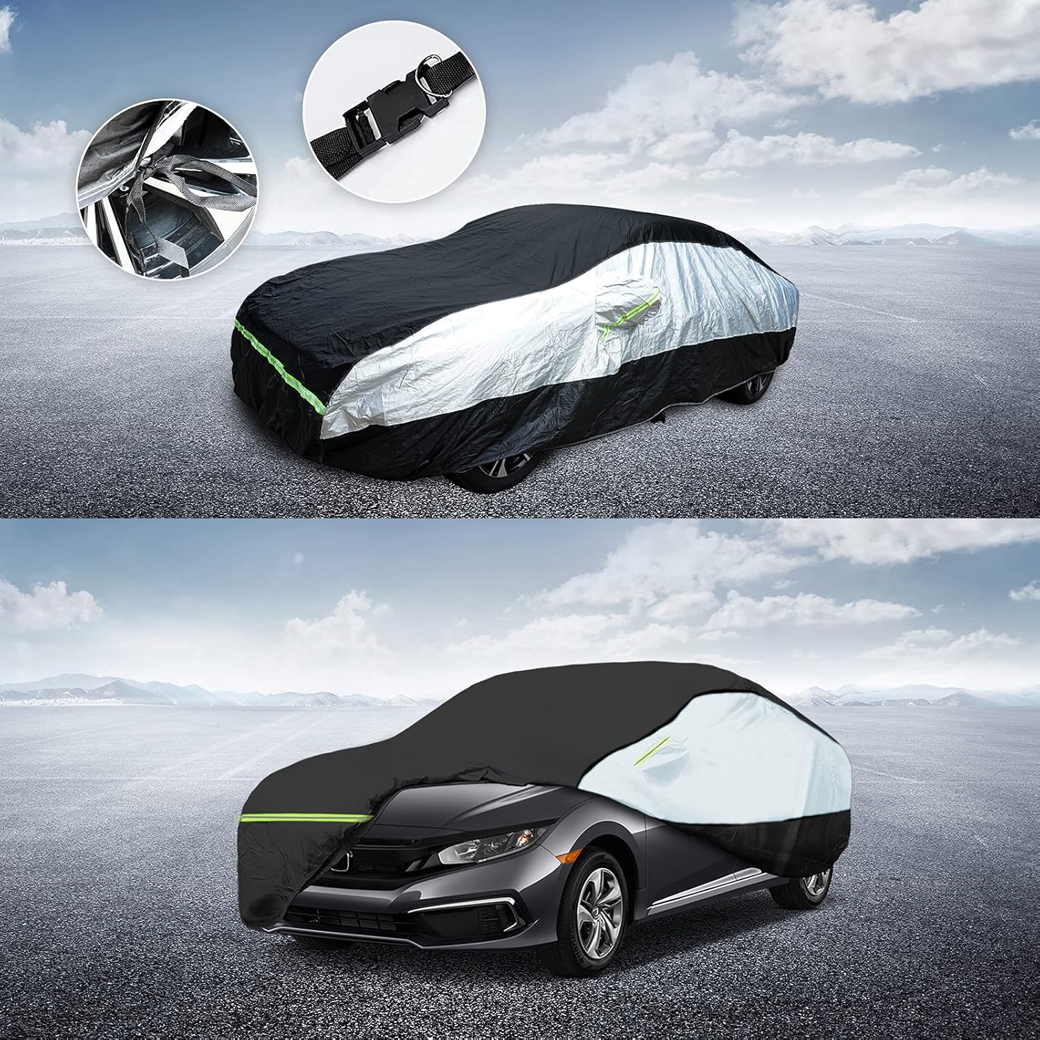 Universal Sedan Car Cover Fit for Toyota Corolla, Honda Civic, Nissan Sentra, Ford Focus, Chevy Cruze,Waterproof All Weather Anti-UV Windproof Snow Protection - Up to 193''(L)