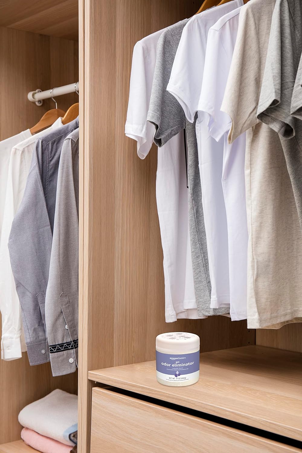- Includes one, 17 ounce Amazon Basics Gel Odor Eliminator