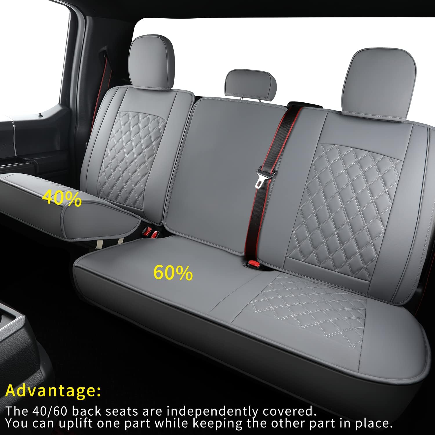 LUCKYMAN CLUB F150 Faux Leather Seat Covers Fit for 2015-2025 F150 and 2017-2025 F250 F350 F450 Pickup Trucks(Full Set, Gray)