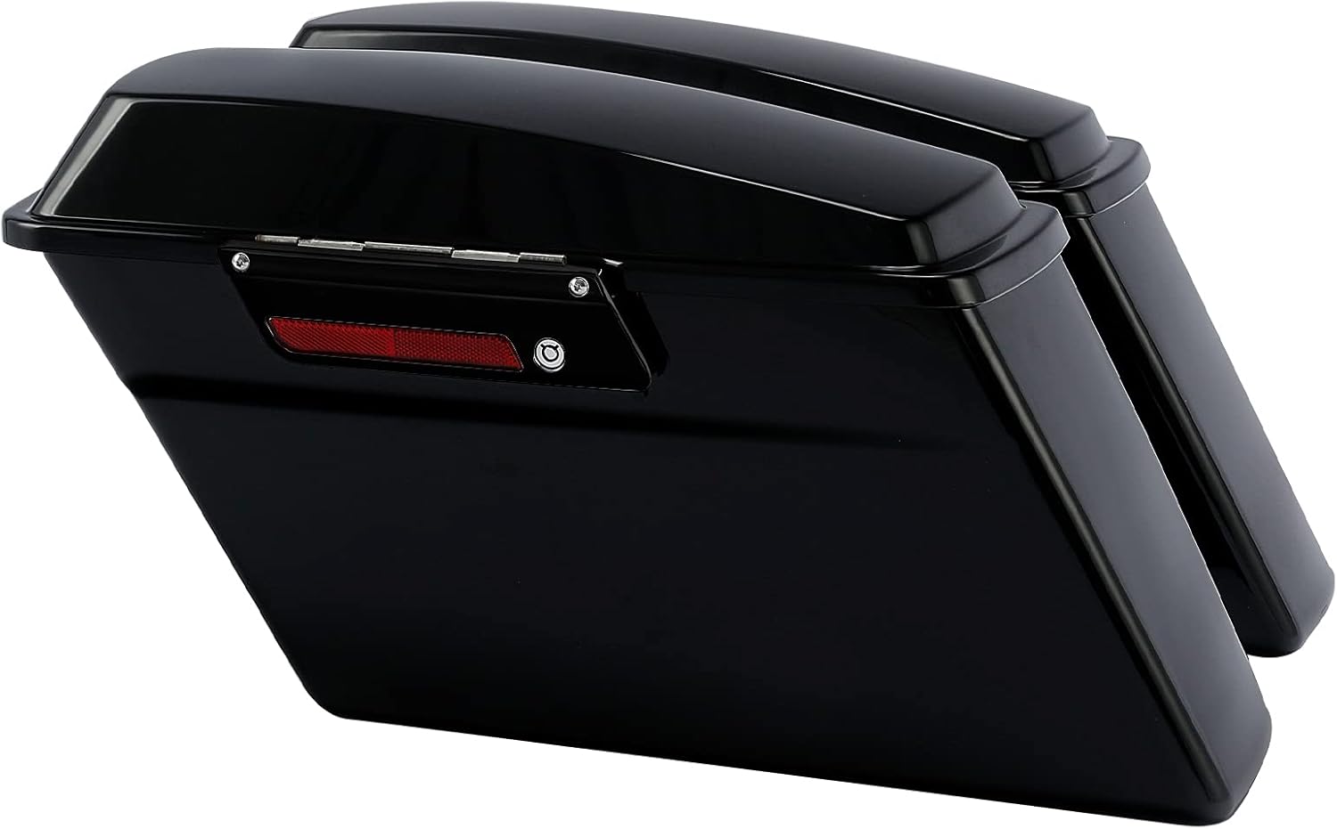 - Material: Made of durable ABS plastic, Vivid Black finish, strong and practical; Left & right stock style lids, fit the saddlebags perfectly and waterproof