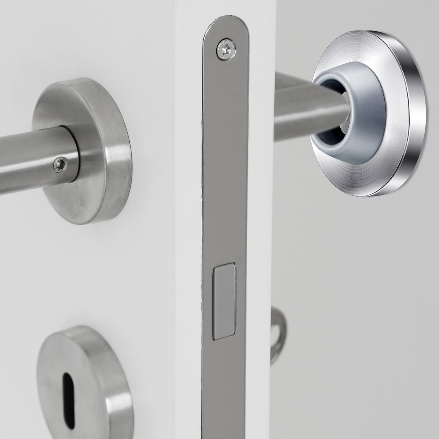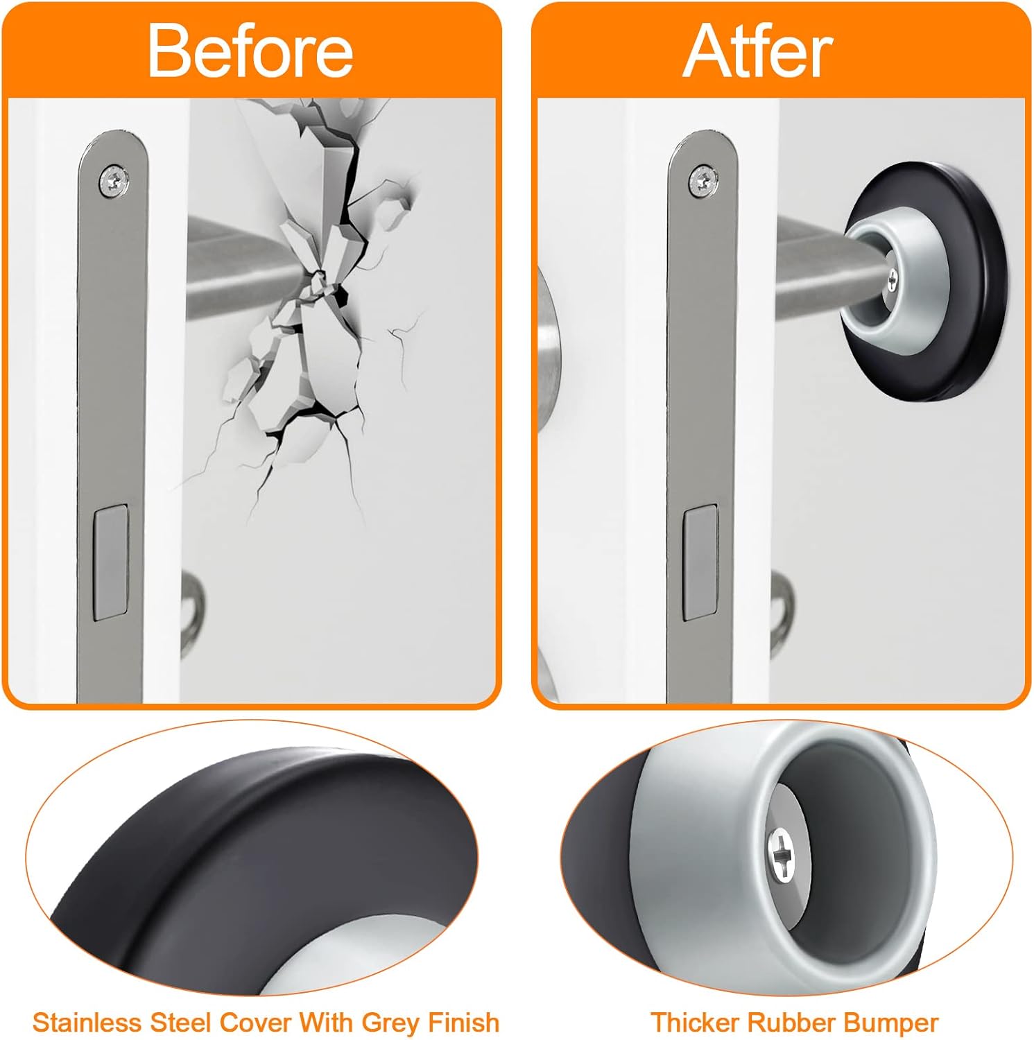 - Protect your walls: stop worrying about making holes in your walls from door knobs with a stainless steel and rubber wall stop; This simple solution protects your walls from round and long door handles