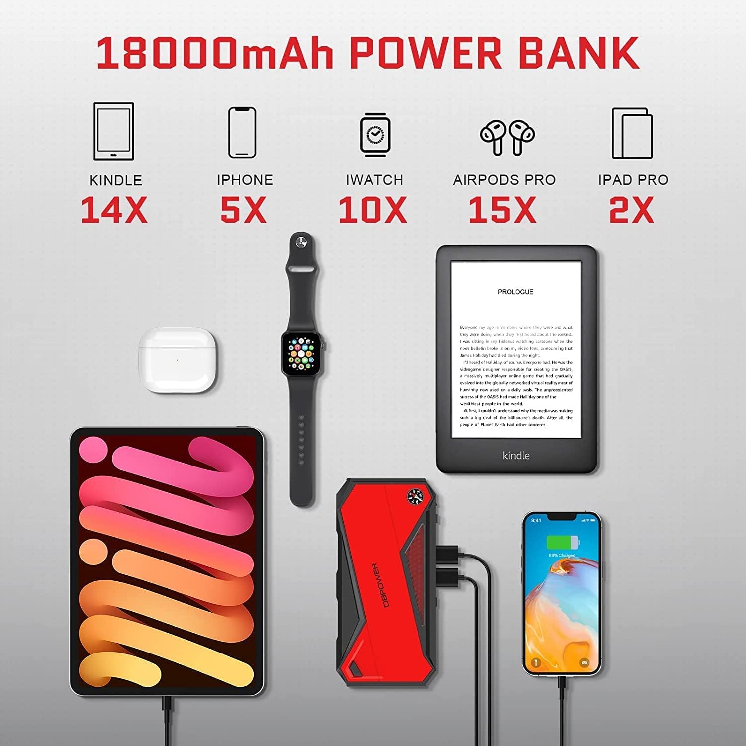 - 【SMART CHARGING PORT】: With 18000mAh capacity and smart USB port, it can full charge your laptops , smartphones, tablets, and other devices at the fastest speed possible.