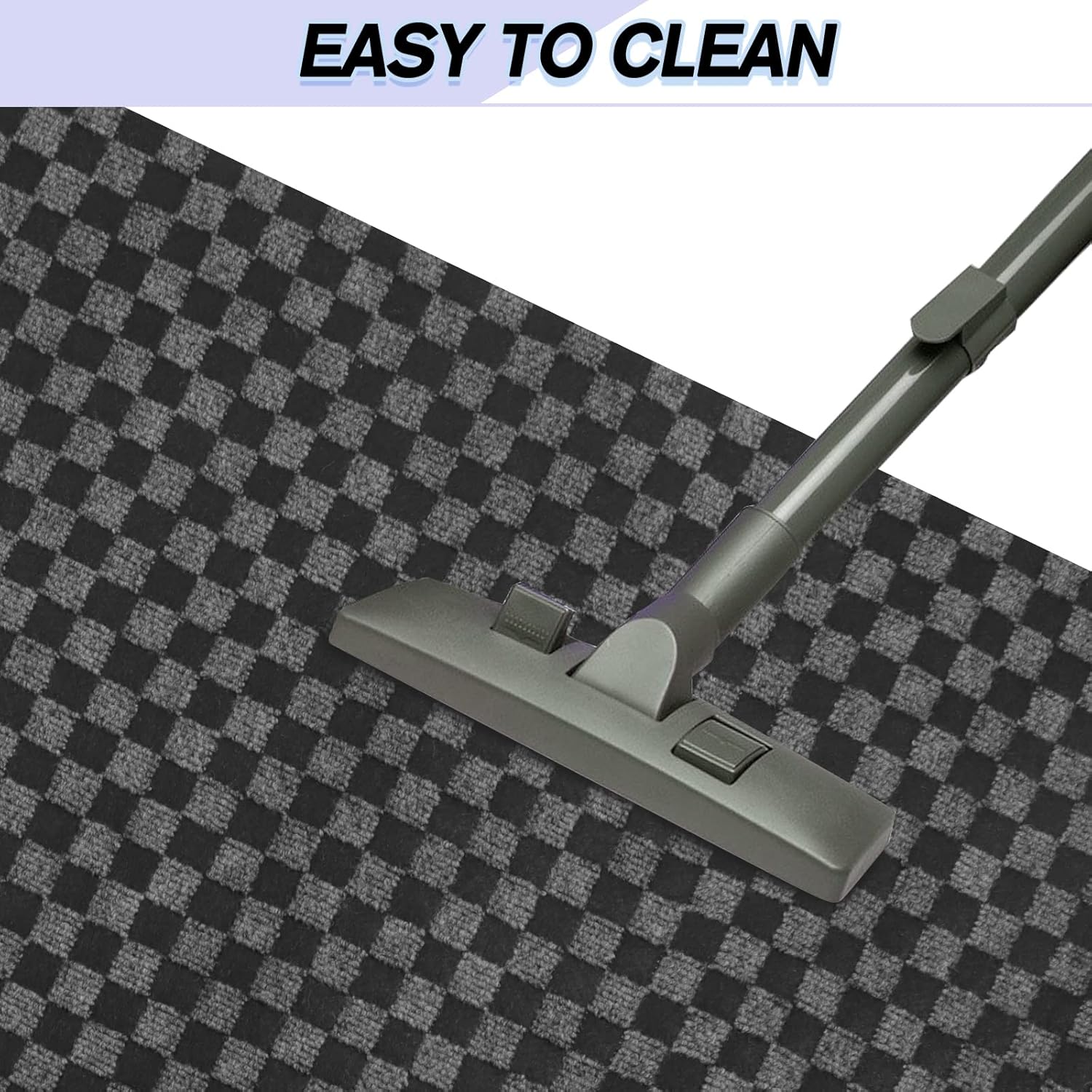 Custom Size Backed Non-Slip Area Rugs Runner, Easy Clean, Waterproof Runner Rugs for Hallway Entryway, Kitchen, Laundry, 2FT x 9FT, Gray Checkered