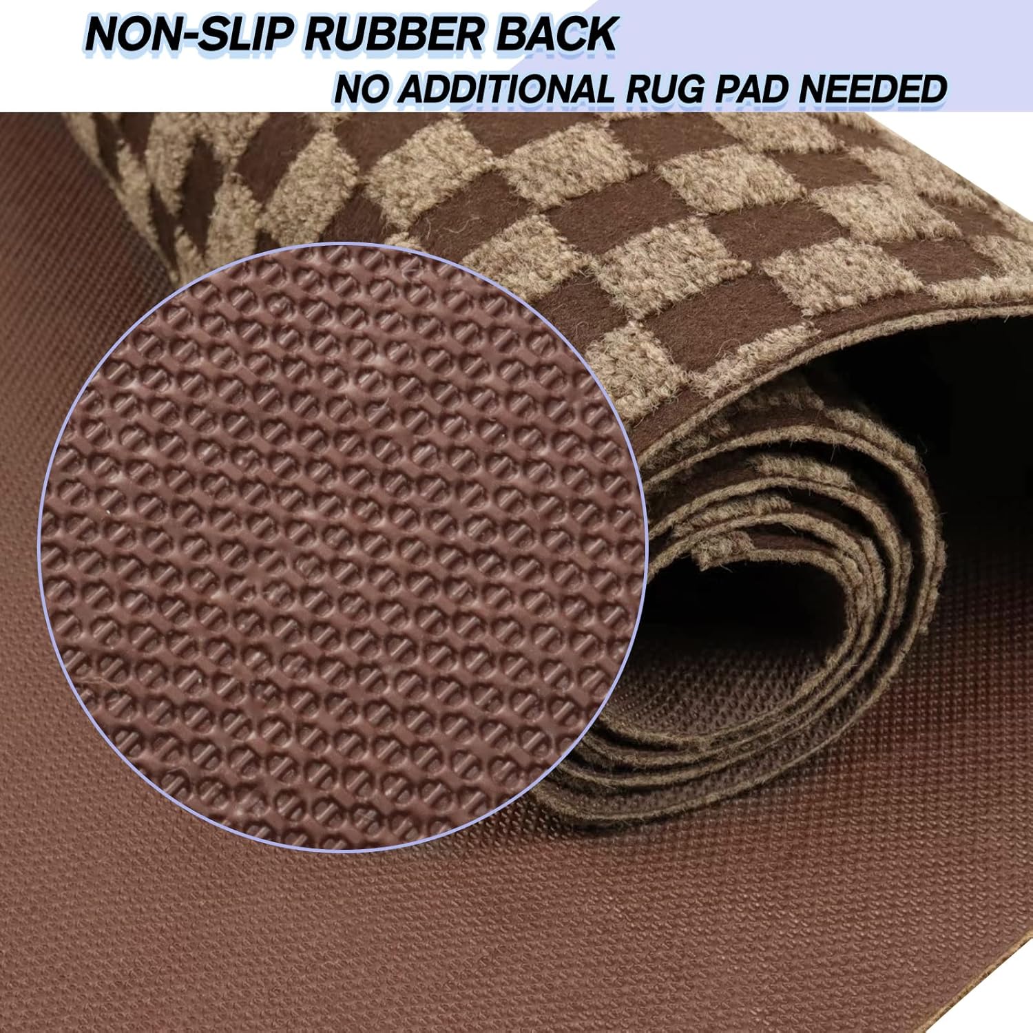 Custom Size Backed Non-Slip Area Rugs Runner, Easy Clean, Waterproof Runner Rugs for Hallway Entryway, Kitchen, Laundry, 3FT x 4FT, Brown Checkered