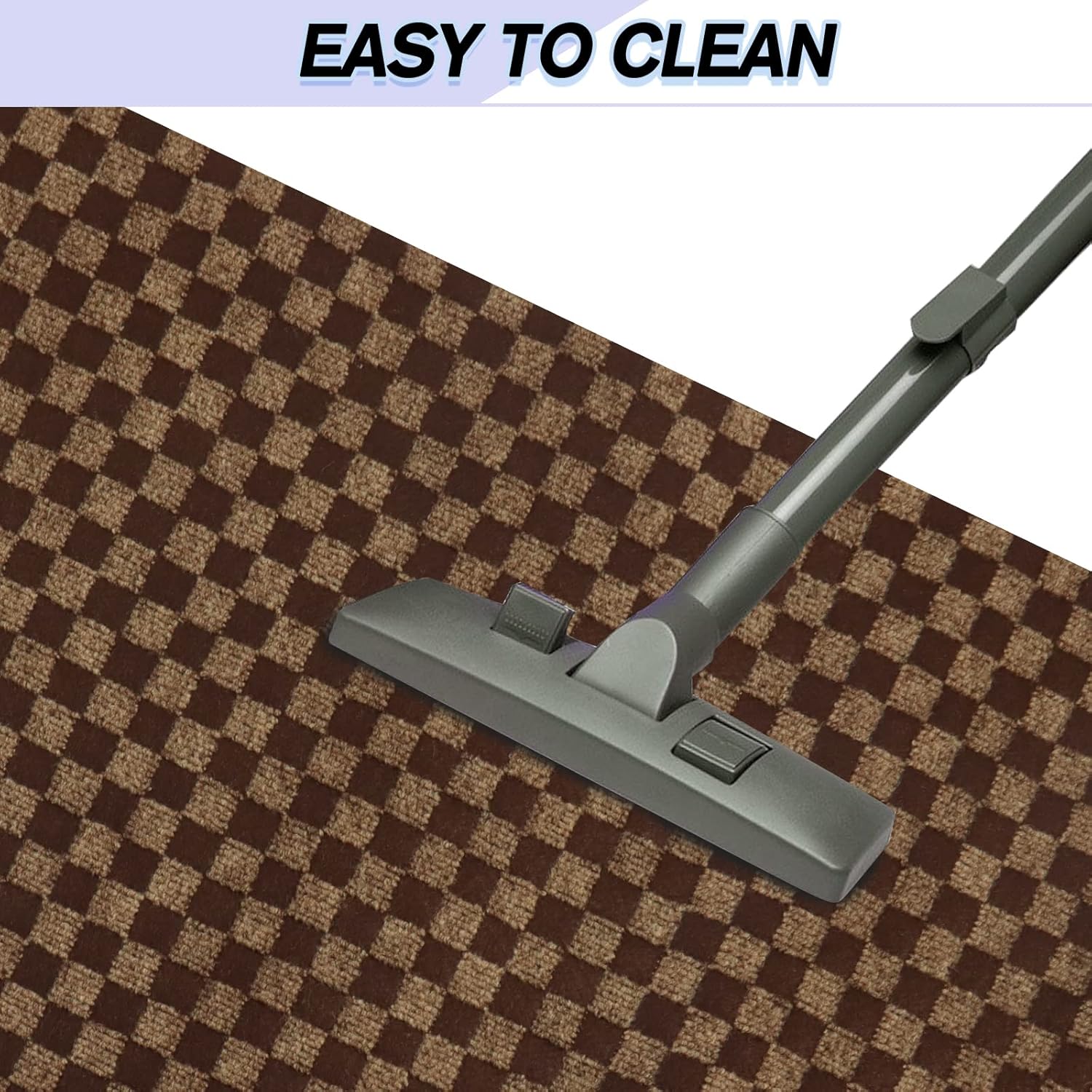 Custom Size Backed Non-Slip Area Rugs Runner, Easy Clean, Waterproof Runner Rugs for Hallway Entryway, Kitchen, Laundry, 3FT x 58FT, Brown Checkered